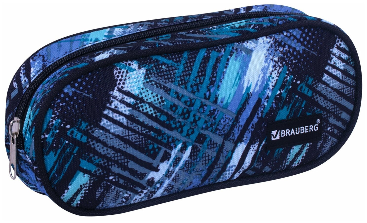 Пенал-косметичка Brauberg овальный, полиэстер, Lines, 22х9х5 см, 229273