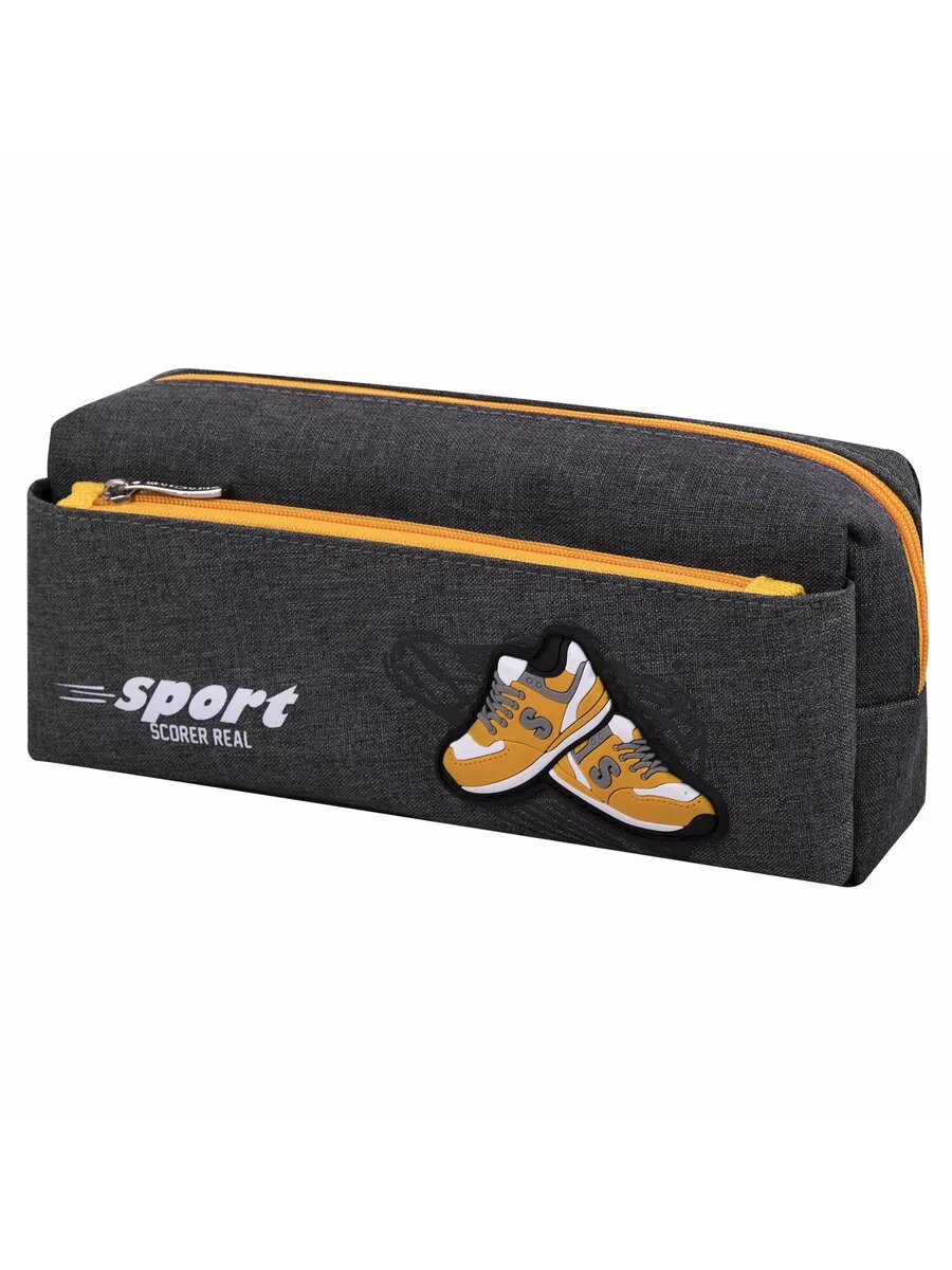 Купить Пенал мягкий юнландия, 2 отделения, полиэстер, "Sport scorer", серый, 20х9х6 см, 271575, в комплекте 1шт