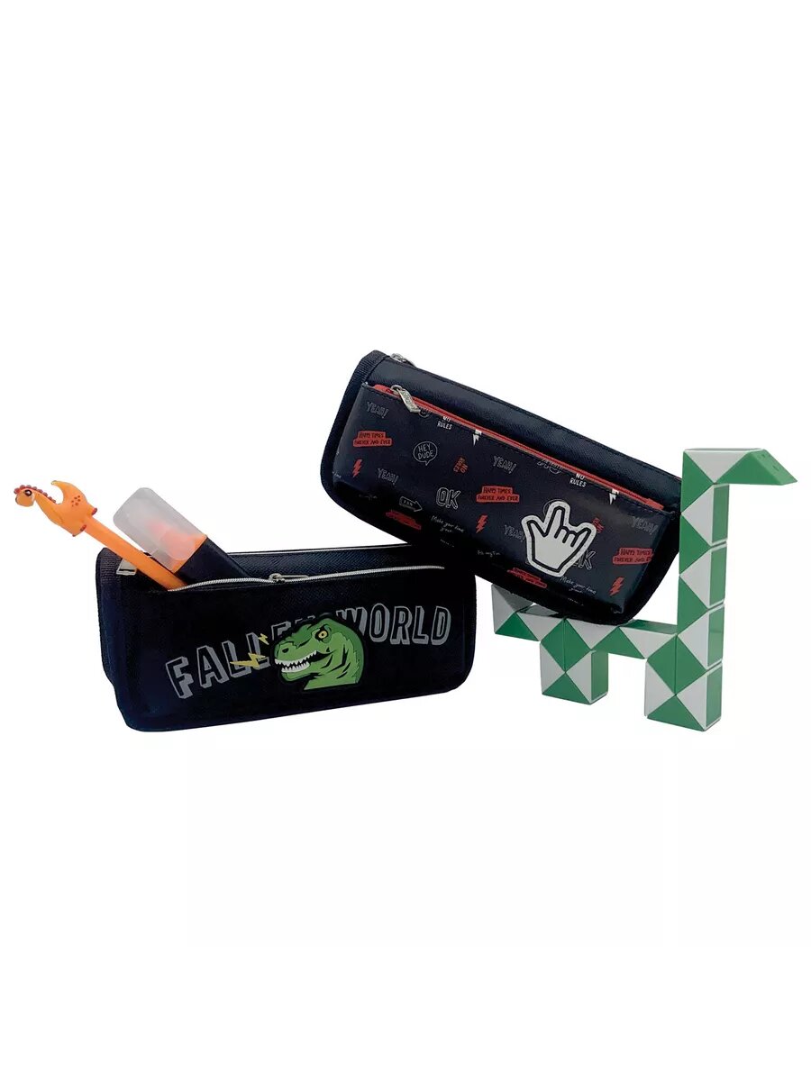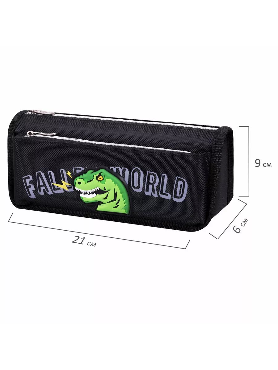 Купить Пенал мягкий юнландия, 2 отделения, полиэстер, "Dino doom", черный, 21х9х6 см, 271574, в комплекте 1шт
