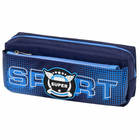 Пенал-косметичка школьный для ручек, карандашей Юнландия, 2 отделения, полиэстер, Sport Scorer, синий, 20х9х6 см, 271575