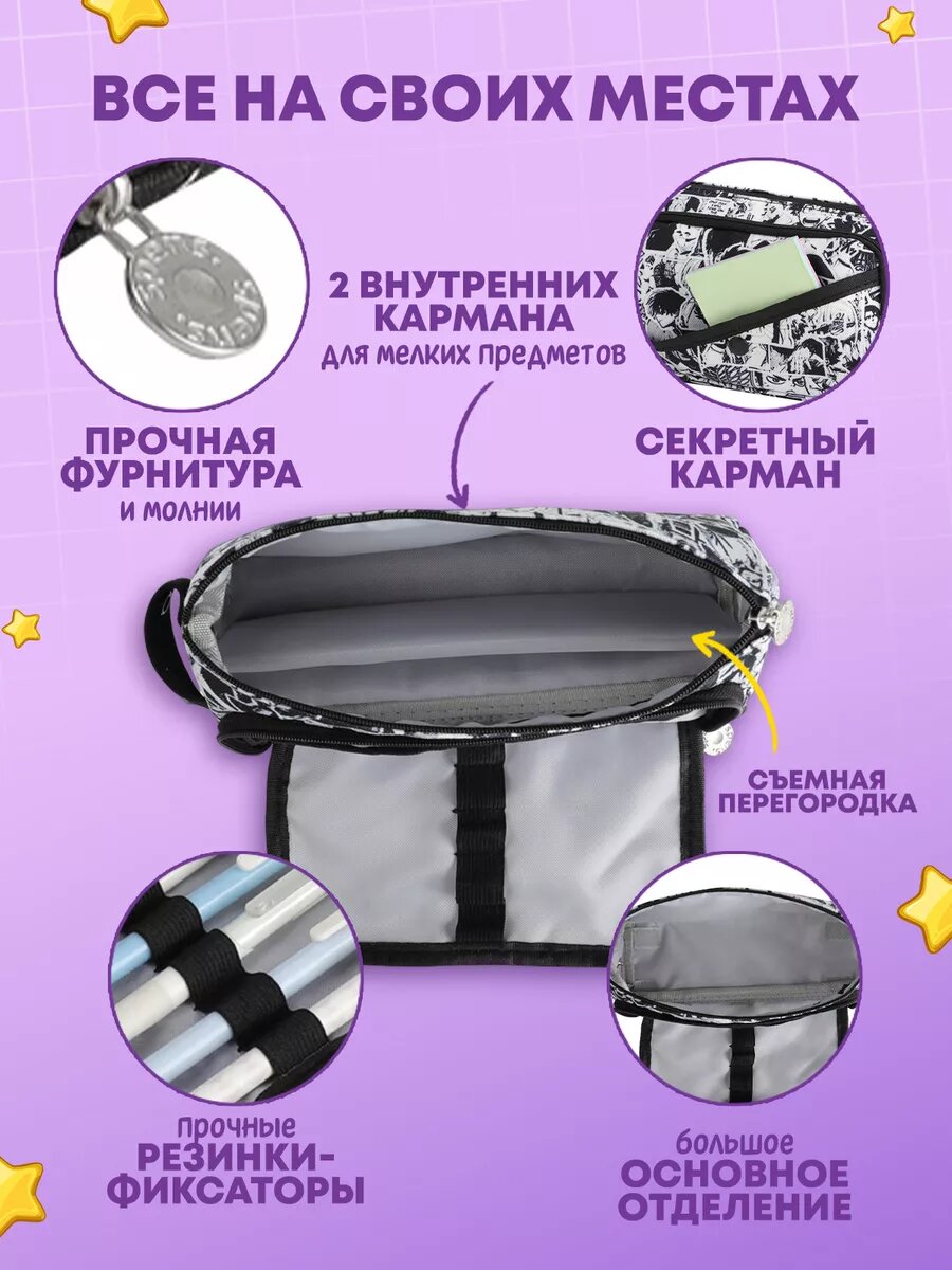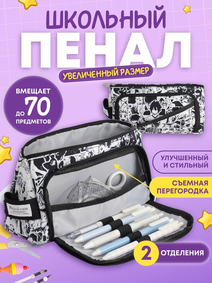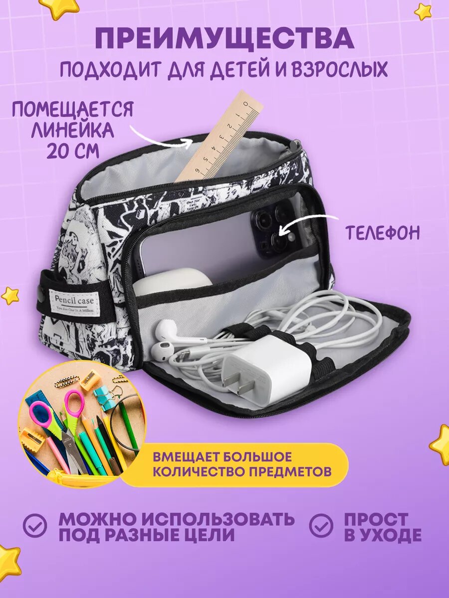 Пенал школьный SPENS для девочек, пенал для мальчиков, косметичка, в стиле аниме, цвет: черно-белый - 1 шт интересное: