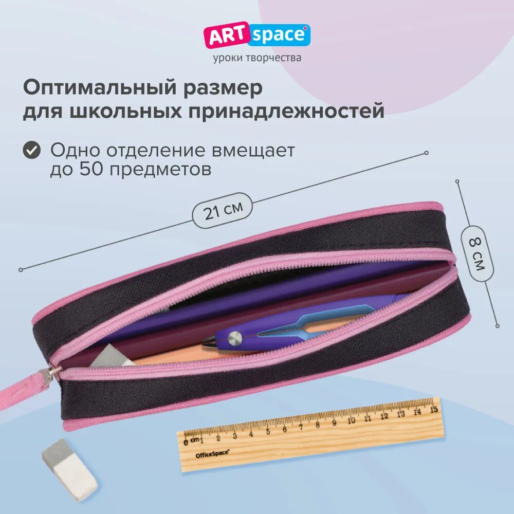 Пенал школьный ArtSpace серии My friend, полиэстер, 1 отделение, канцелярия для девочек, подростков, товары для школы, аниме интересное: