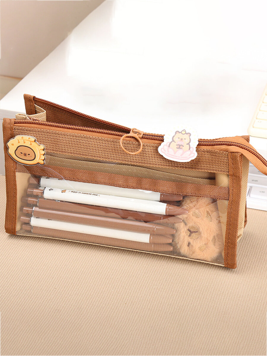 Купить Школьный детский пенал для подростков с капибарой - Эстетичный канцелярский органайзер на молнии, 5 отделений