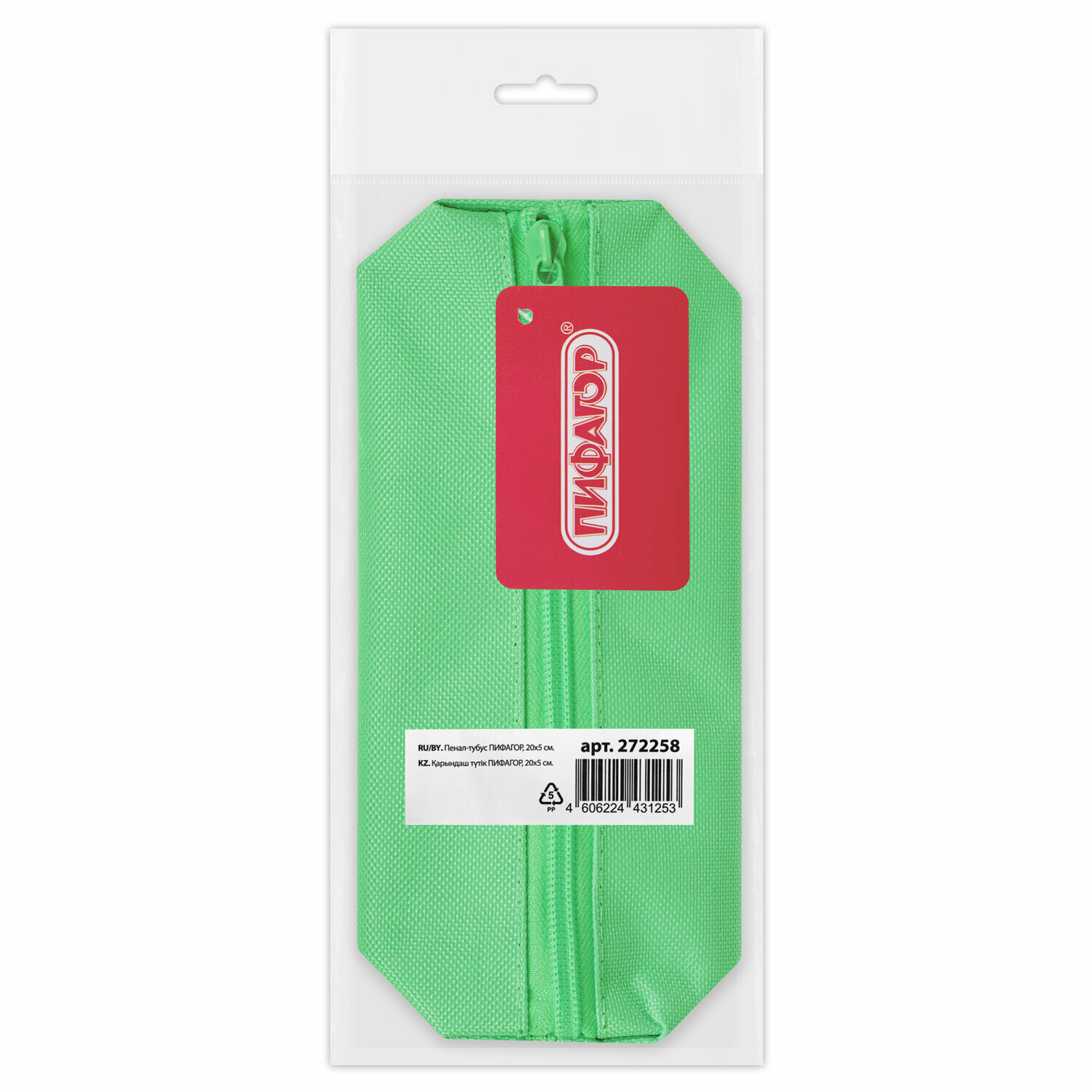 Пенал-тубус пифагор на молнии, ткань, зеленый, 20х5 см, 272258, в комплекте 1шт