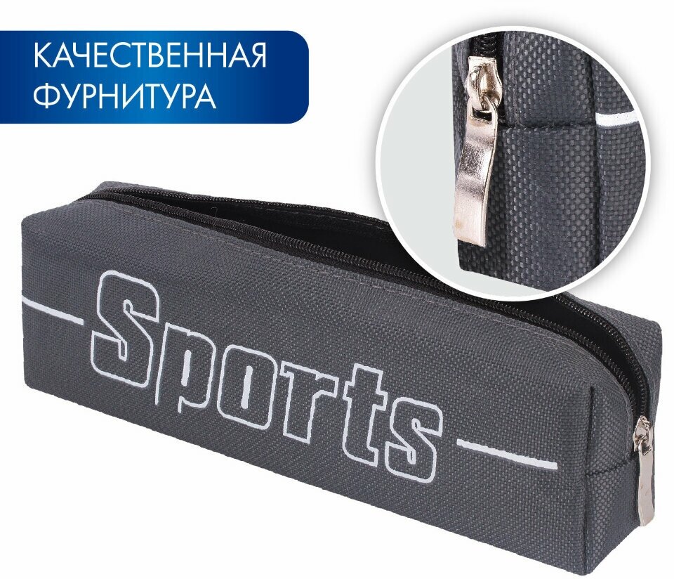 Пенал BRAUBERG, 1 отделение, полиэстер, "Sport", серый, 19х