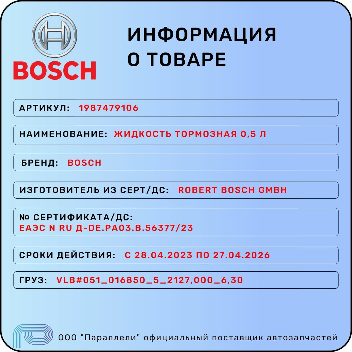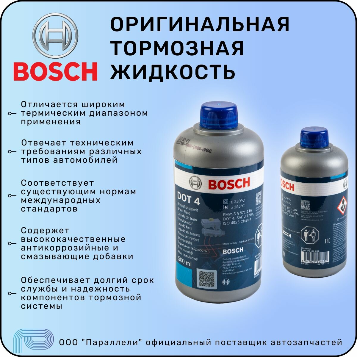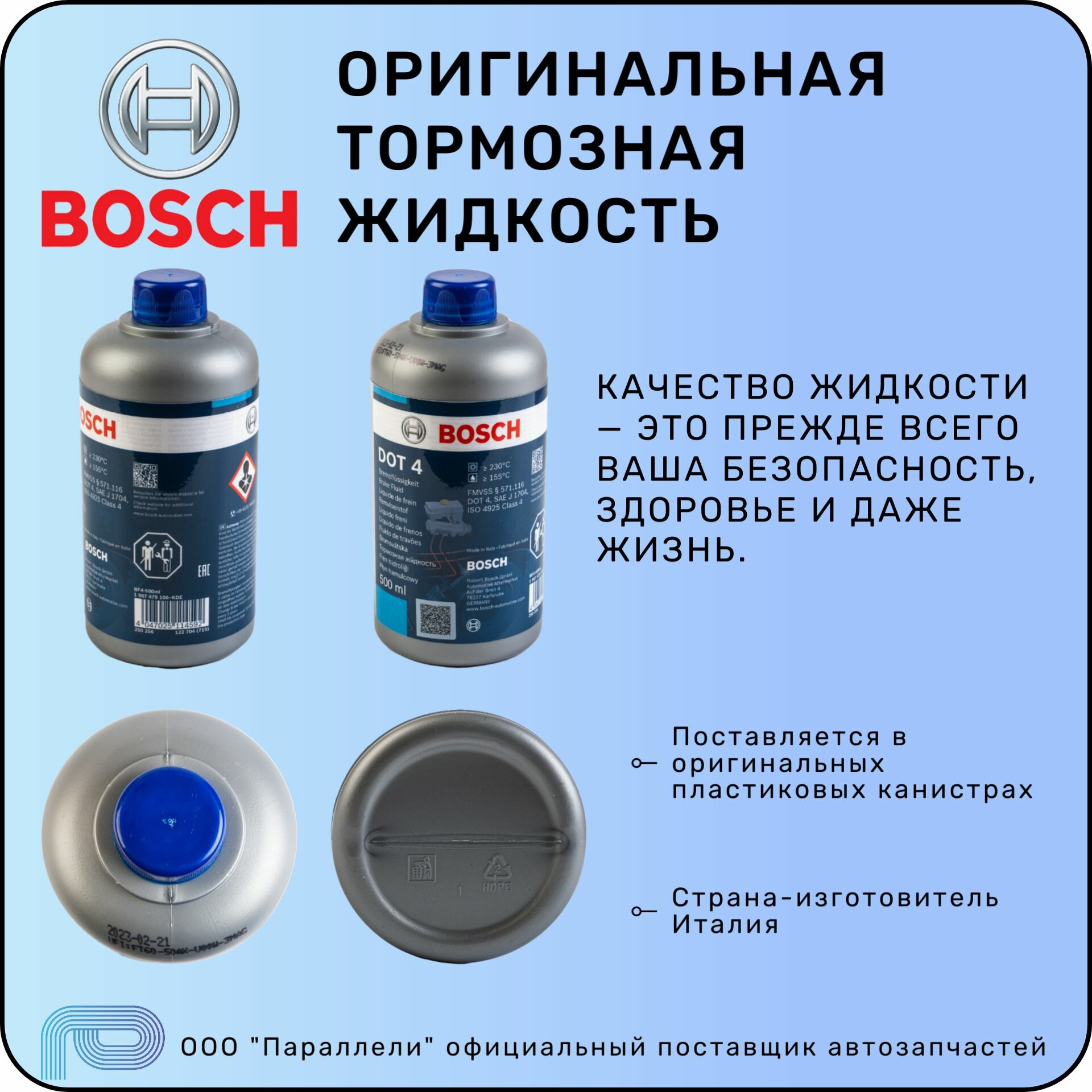 Жидкость тормозная BOSCH DOT 4 BRAKE FLUID 0.5л интересное: