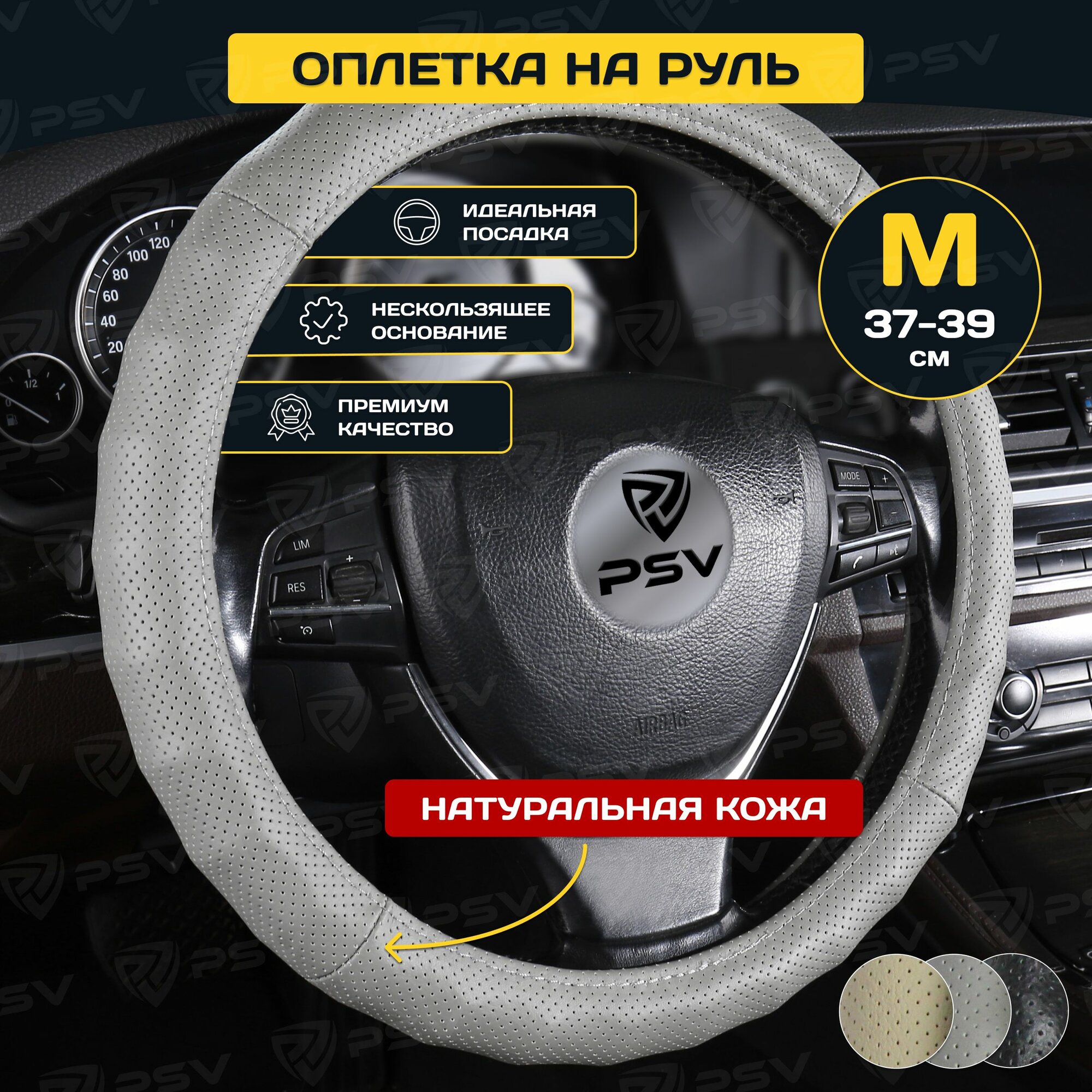 Оплетка руля M PSV Klassika экокожа перфорированная серая PSV 136117 | цена за 1 шт