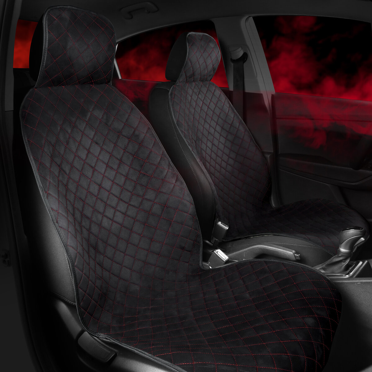 CARCAPE/ Накидки чехлы на сиденье автомобиля из алькантары универсальные накидки на передние сиденья 2шт. Модель SOFIA. Черный, красная строчка
