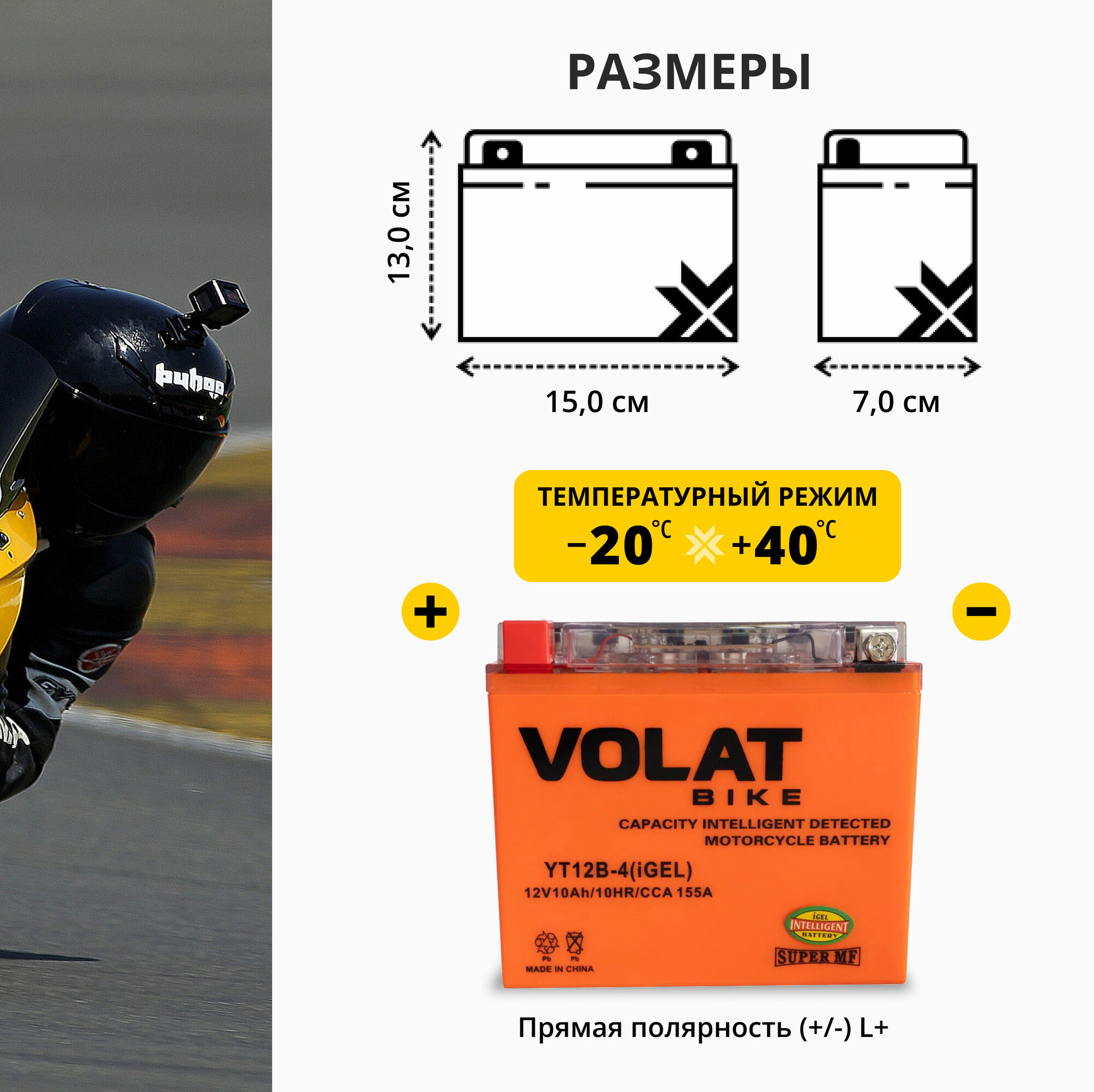 Ниже Вы можете прочитать отзывы на Аккумулятор для мотоцикла 12v Volat YT12B-4(iGEL) прямая полярность 10 Ah 155 A гелевый, акб на скутер, мопед, квадроцикл, мотоцикл, ознакомится с подробными характеристиками, посмотреть интересные обзоры и фотографии на Аккумулятор для мотоцикла 12v Volat YT12B-4(iGEL) прямая полярность 10 Ah 155 A гелевый, акб на скутер, мопед, квадроцикл, мотоцикл.