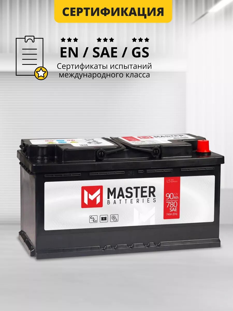 Аккумулятор автомобильный MASTER BATTERIES 90 Ah 740 A прямая полярность 353x175x190