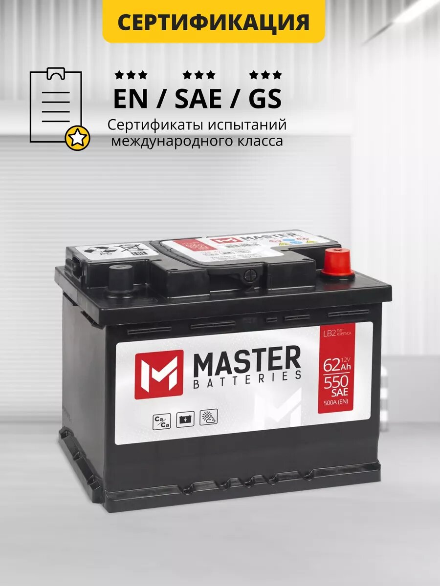 Купить Аккумулятор автомобильный MASTER BATTERIES 62 Ah 500 A обратная полярность 242x175x175