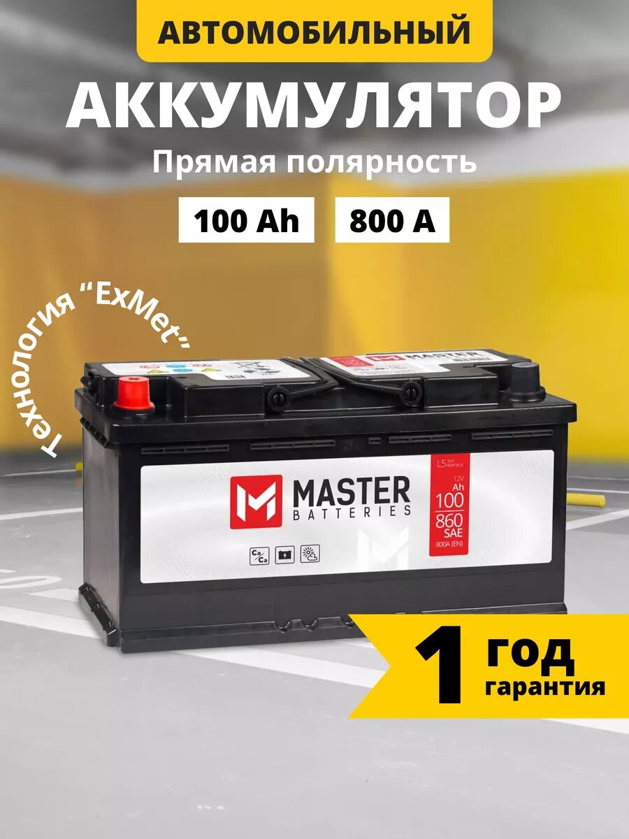 Купить Аккумулятор автомобильный MASTER BATTERIES 100 Ah 800 A прямая полярность 353x175x190