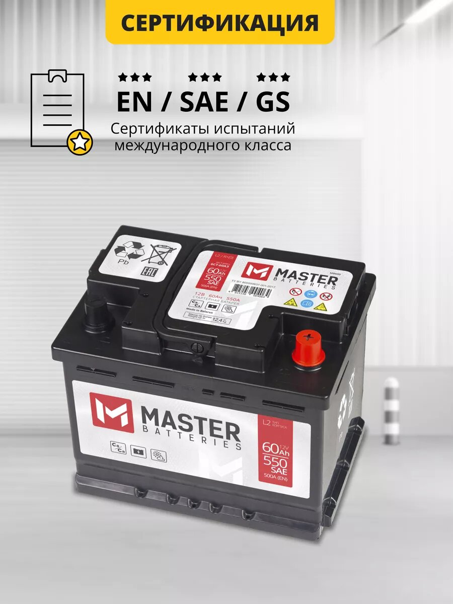 Купить Аккумулятор автомобильный MASTER BATTERIES 60 Ah 500 A обратная полярность 242x175x190
