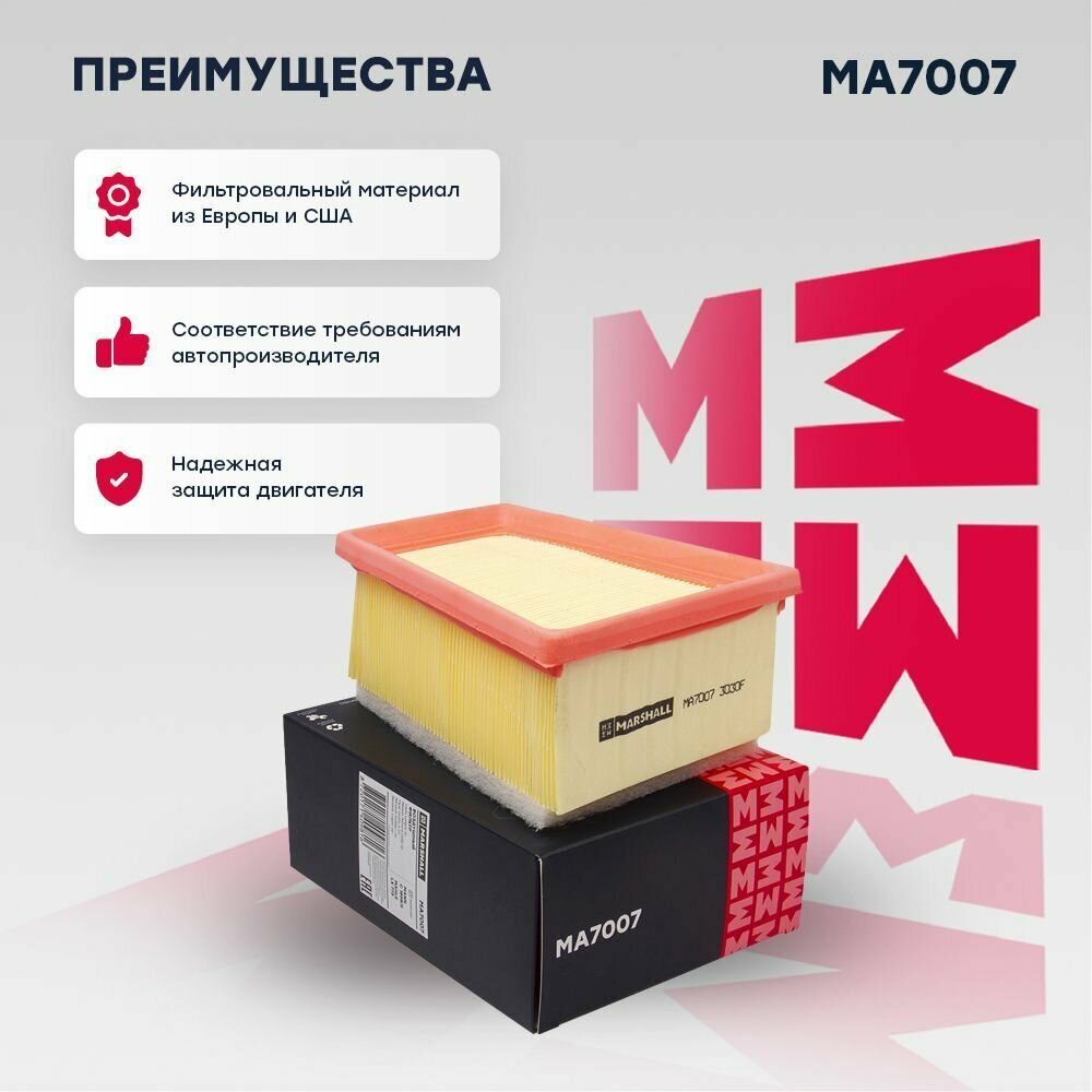 Фильтр воздушный MARSHALL MA7007 для Lada Largus, Nissan Almera, Opel Vivaro A, Renault Duster, Renault Logan // кросс-номер MANN C 1858/2
