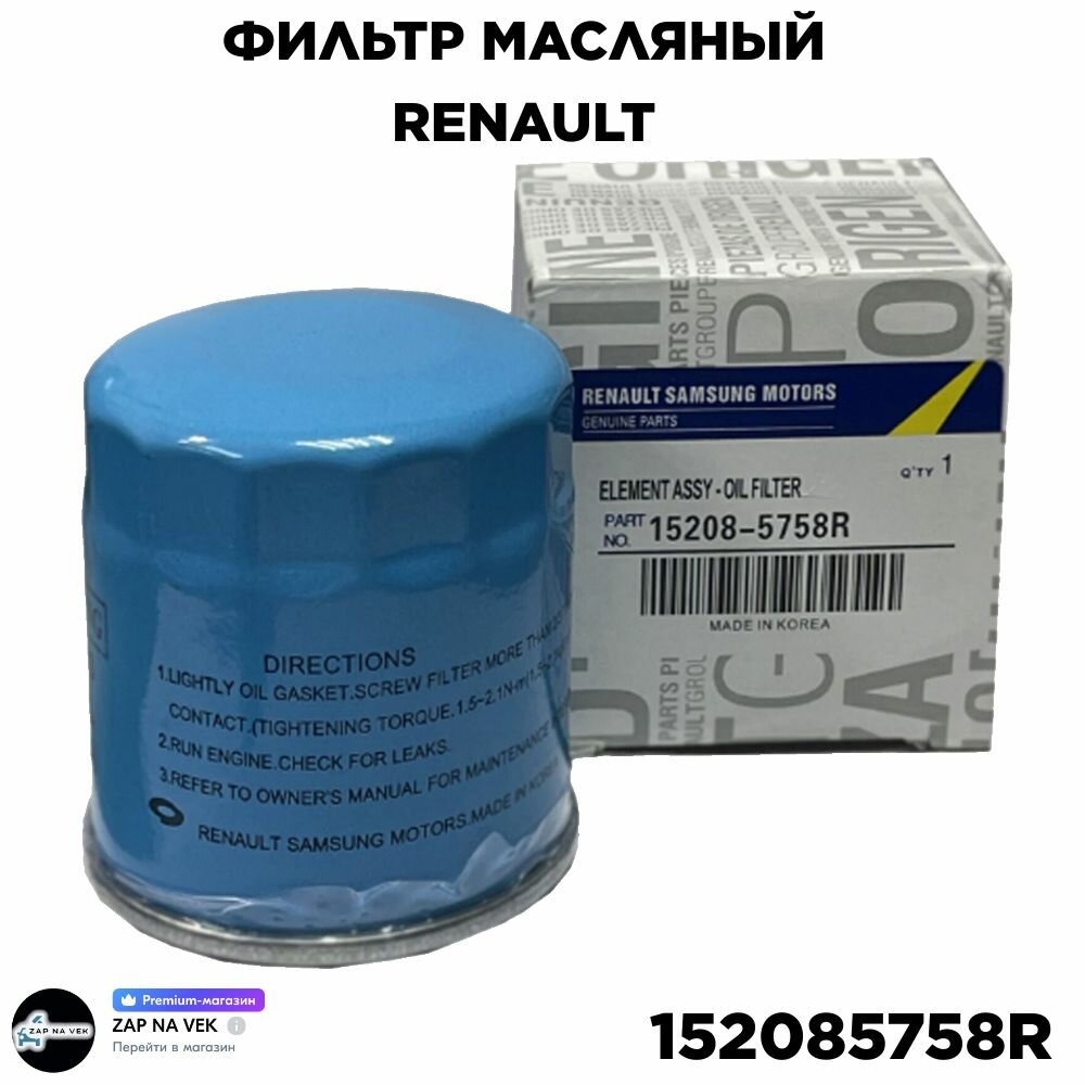 Фильтр масляный Renault 152085758R, Largus Vesta XRAY Cross Duster Fluence Scenic Koleos Laguna Logan Escape Dokker,Ларгус Веста Кросс Дастэр Флюенс Циник Колеос Лагуна Логан Эскейп Доккер
