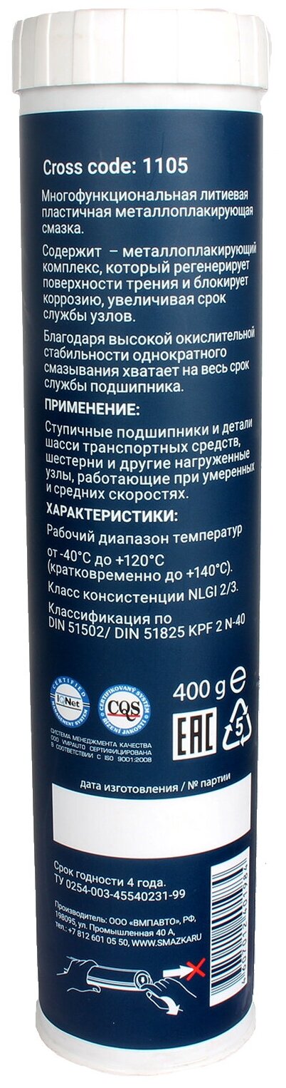 Смазка Востанавливающая Вмпавто Мс 1000 Катридж 400 Гр ВМПАВТО арт. 1105