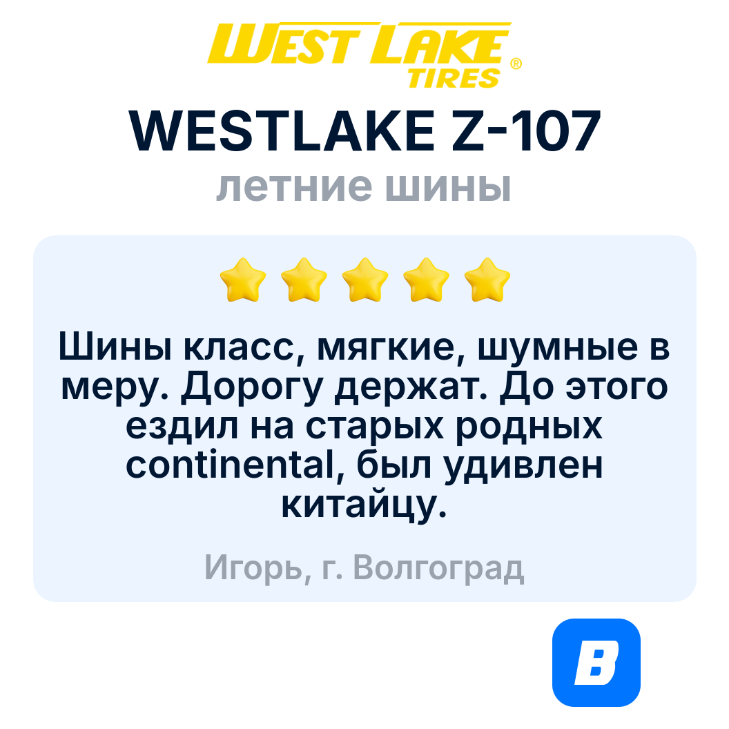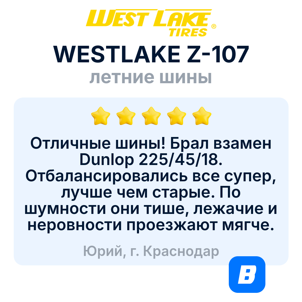 Ниже Вы можете прочитать отзывы на Летние шины Westlake Z-107 225/45R18 95W XL, ознакомится с подробными характеристиками, посмотреть интересные обзоры и фотографии на Летние шины Westlake Z-107 225/45R18 95W XL.