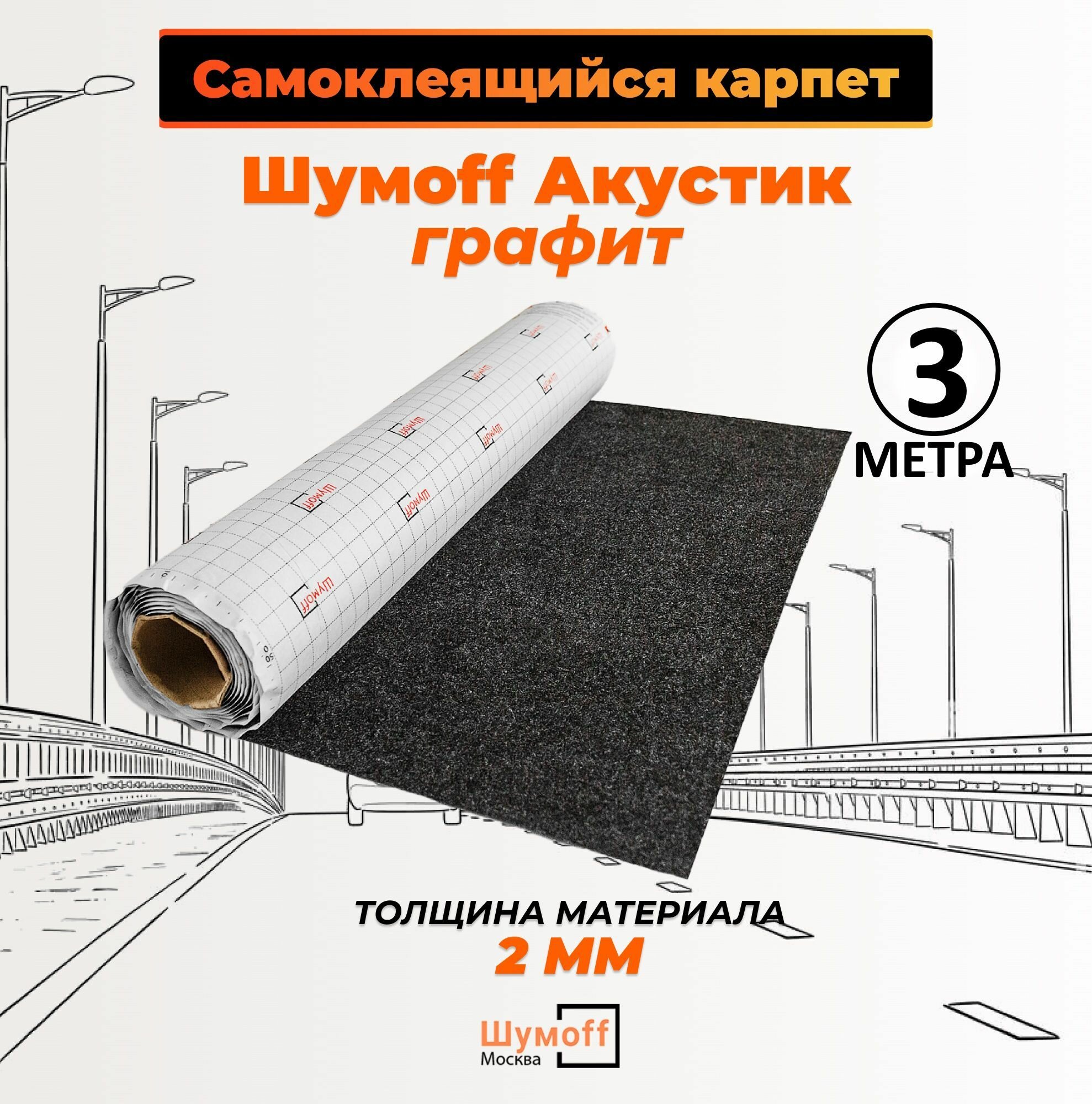 Шумоизоляция автомобильная Карпет самоклеющийся Шумофф Акустик черный 70 см х 3 п.м.