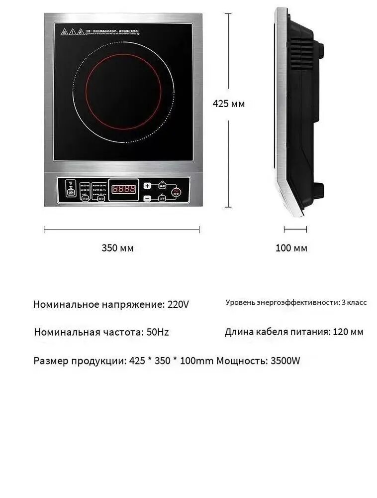 Купить Плита Куболитр индукционная настольная Demata IP3500 , 3500 Вт, электрическая, стеклокерамика (сенсорная панель управления) для самогоноварения и не только, безимпульсная, таймер 3 часа, нагрузка до 100 кг