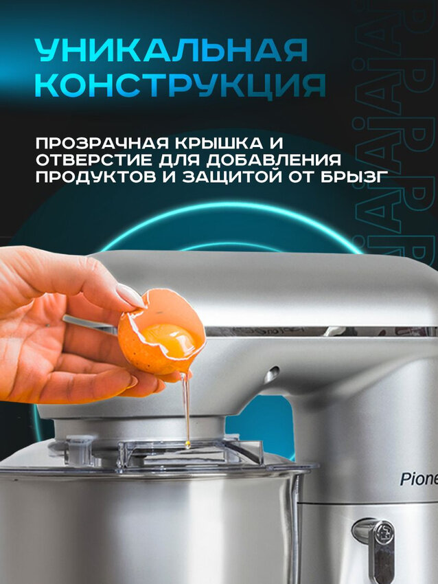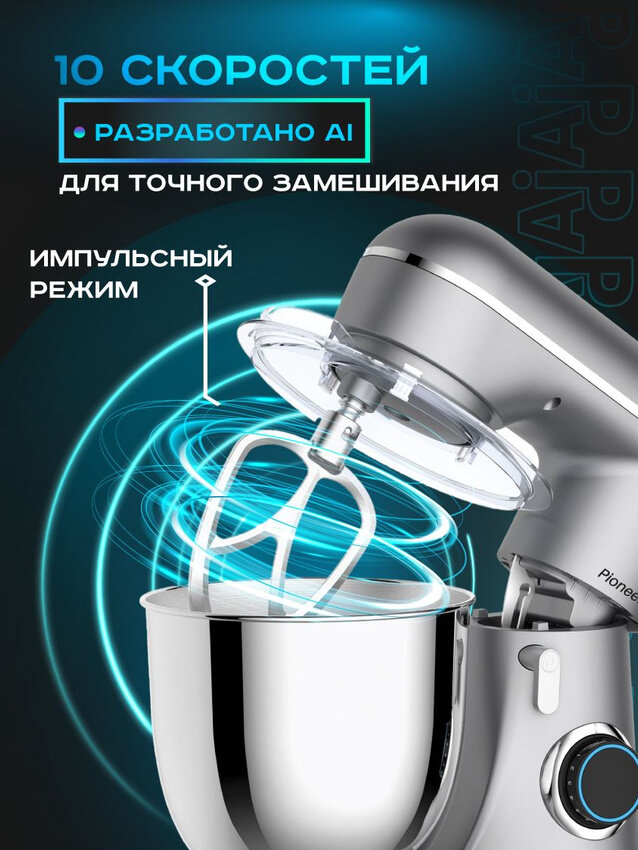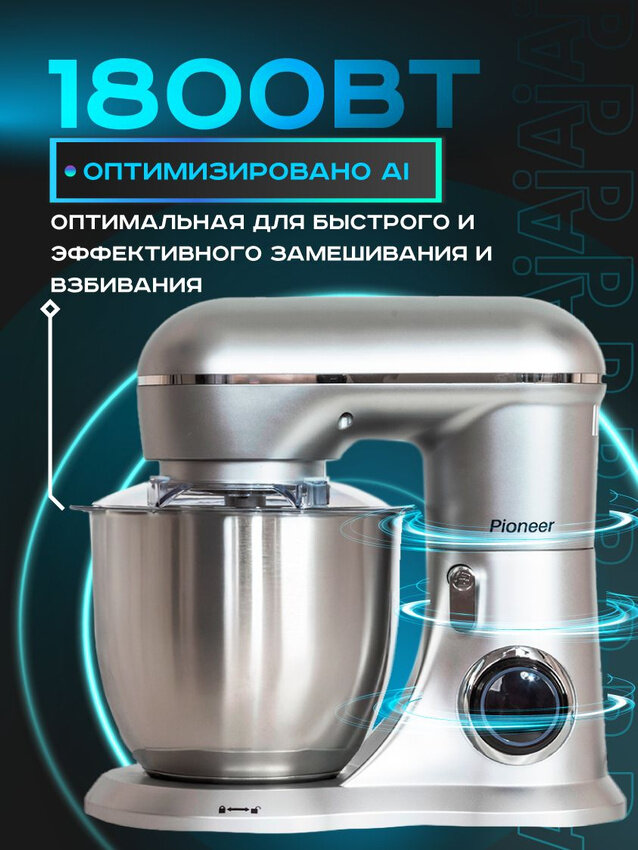 Миксер планетарный Pioneer MX329, 10 скоростей, 3 насадки, импульсный режим, защита двигателя от перегрева, 1300 Вт интересное:
