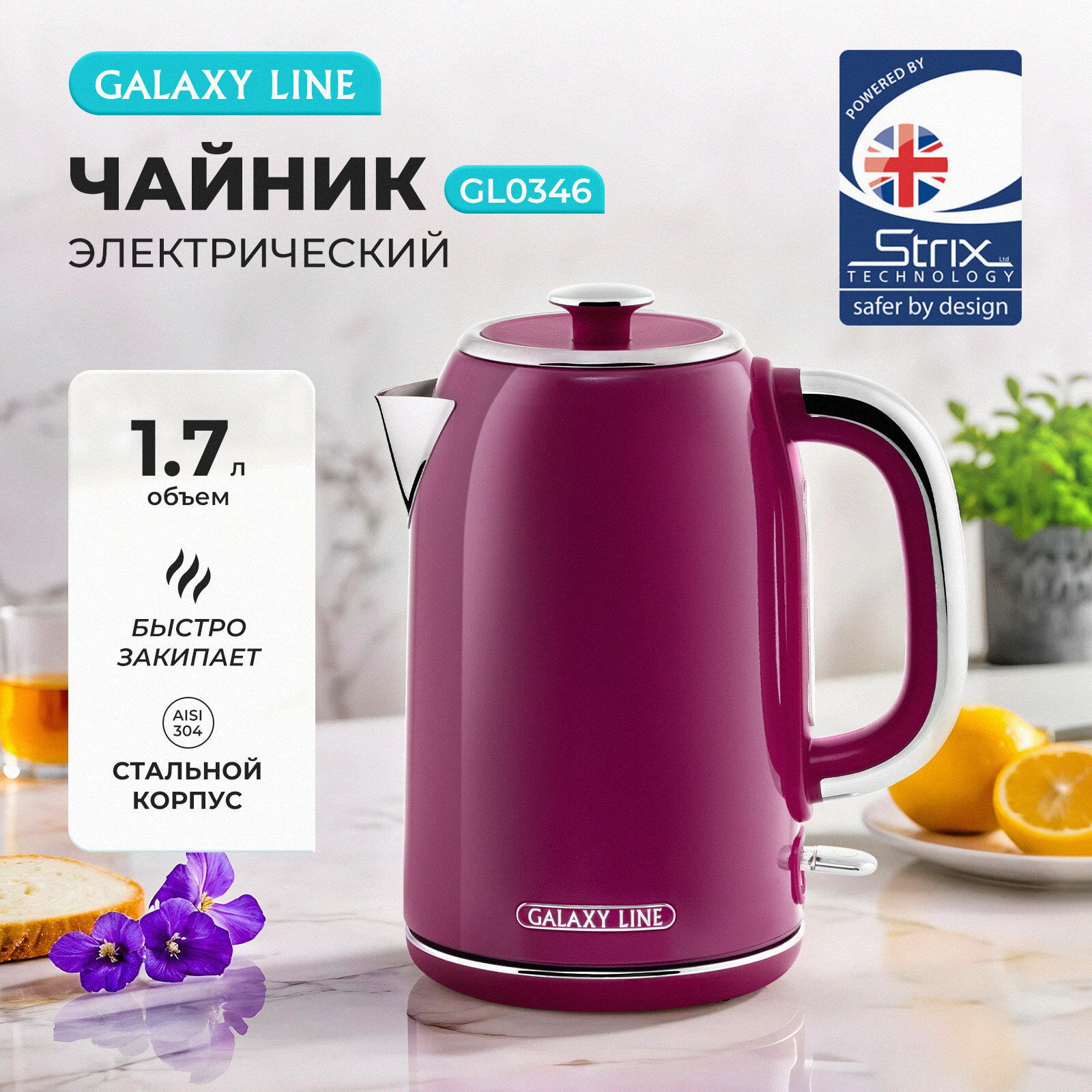 Электрический чайник GALAXY LINE Fashion Show с объемом 1,7 литра и мощностью 2,2 кВт