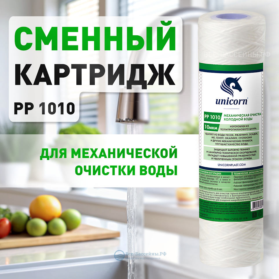 Картридж (шнур) 10" 10 микрон РР 1010 Юникорн для механической очистки воды интересное:
