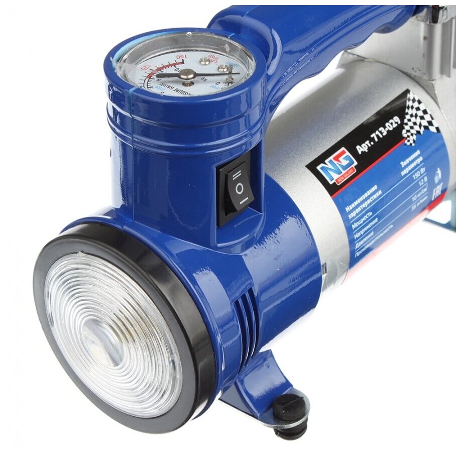 Компрессор NEW GALAXY 713-029 автомобильный, штекер прикур, LED фонарь, 12V, 150W, 35л/мин, метелл интересное: