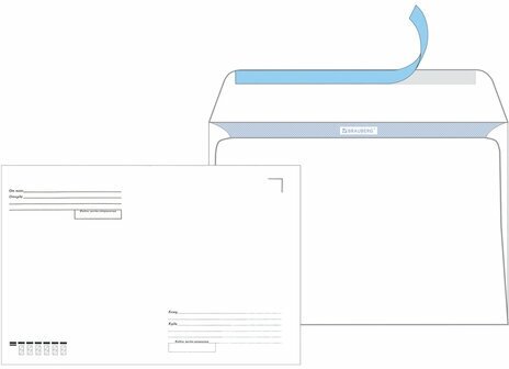 Конверт почтовый бумажный белый "С4" формата 229х324 мм, 100 г/м2, комплект/набор из 50 штук, Brauberg, отрывная лента, внутренняя запечатка, 112183