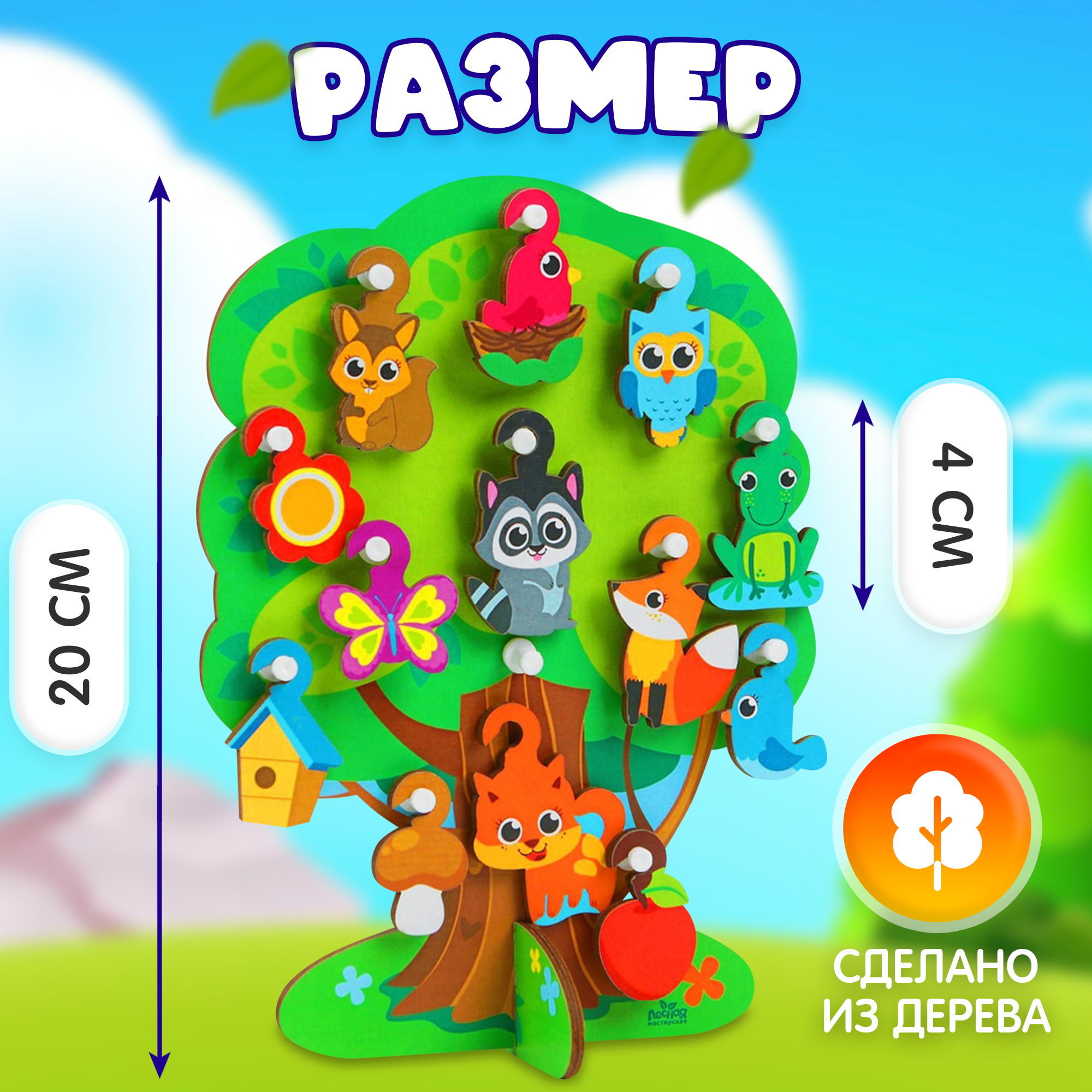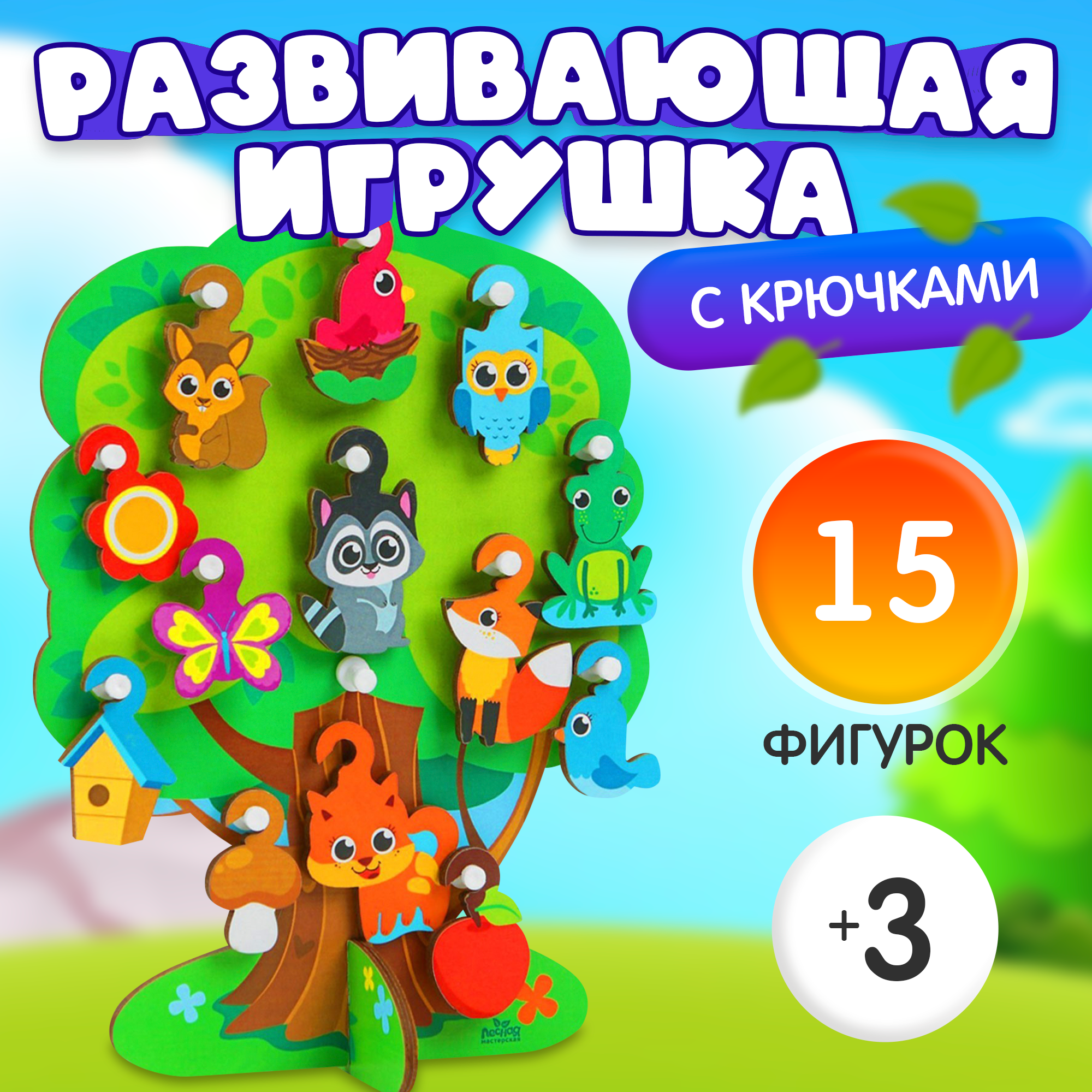 Игрушка с крючками "Лесное дерево" Развивающая, с фигурками животных, сюжетная игра, для малышей интересное: