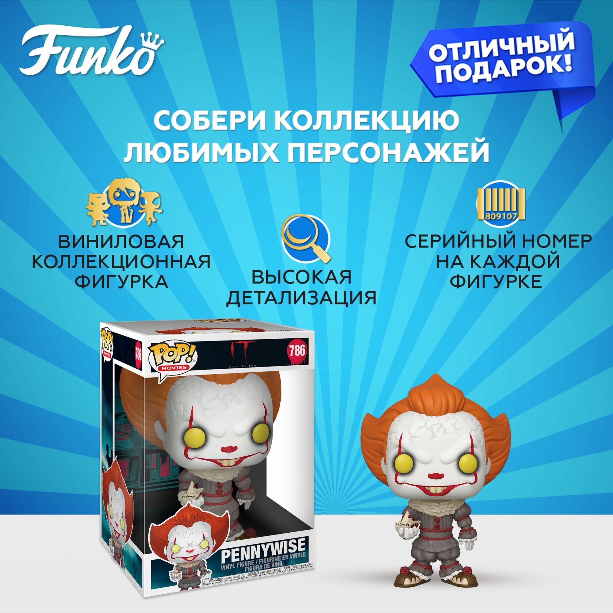 Ниже Вы можете прочитать отзывы на Фигурка Funko POP! Vinyl IT Chapter 2 10" Pennywise w/ Boat/ Фанко ПОП по мотивам ужастика ОНО, 25 см, ознакомится с подробными характеристиками, посмотреть интересные обзоры и фотографии на Фигурка Funko POP! Vinyl IT Chapter 2 10" Pennywise w/ Boat/ Фанко ПОП по мотивам ужастика ОНО, 25 см.