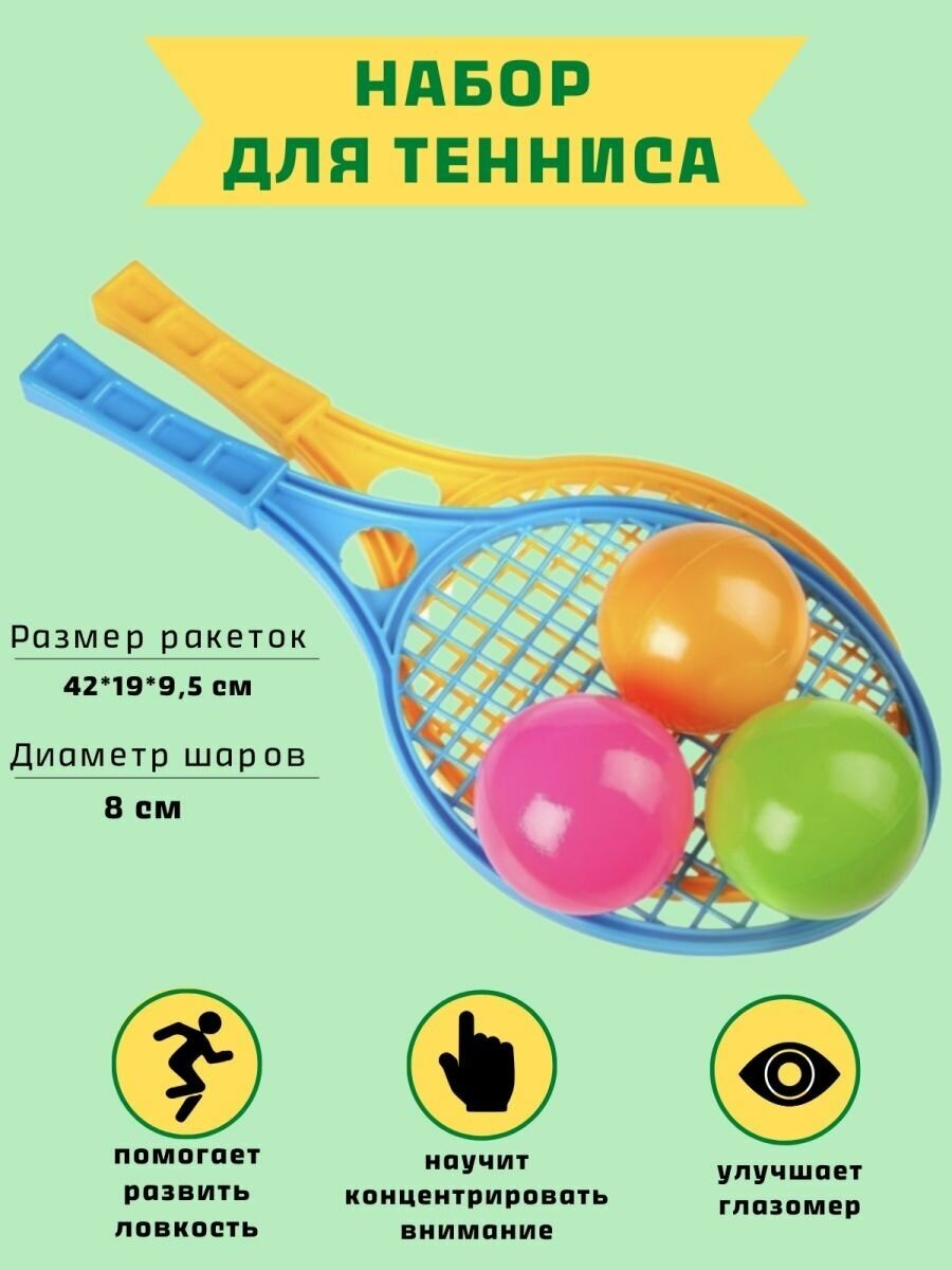 Набор для большого тенниса (2 ракетки, 3 мяча, пластик, в сетке, от 3 лет) 7010, (ИП Синицын А. А.) интересное: