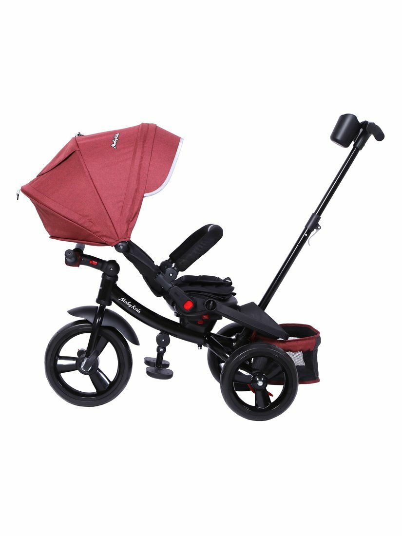 Купить Велосипед детский трехколесный Moby Kids трансформер с ручкой управления, поворот сиденья, бордовый, от 1 голда