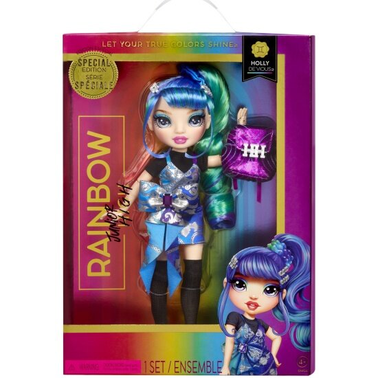 Рейнбоу Хай Кукла Junior Холли де Виус 24 см синяя с аксессуарами RAINBOW HIGH