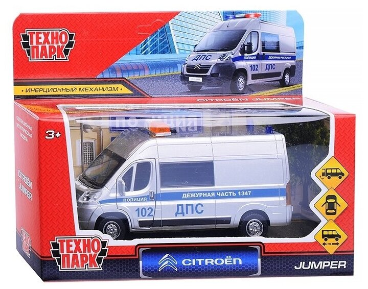 Машина Citroen Jumper Полиция 14 см серебристая металл инерция Технопарк, JUMPER-14POL-SR
