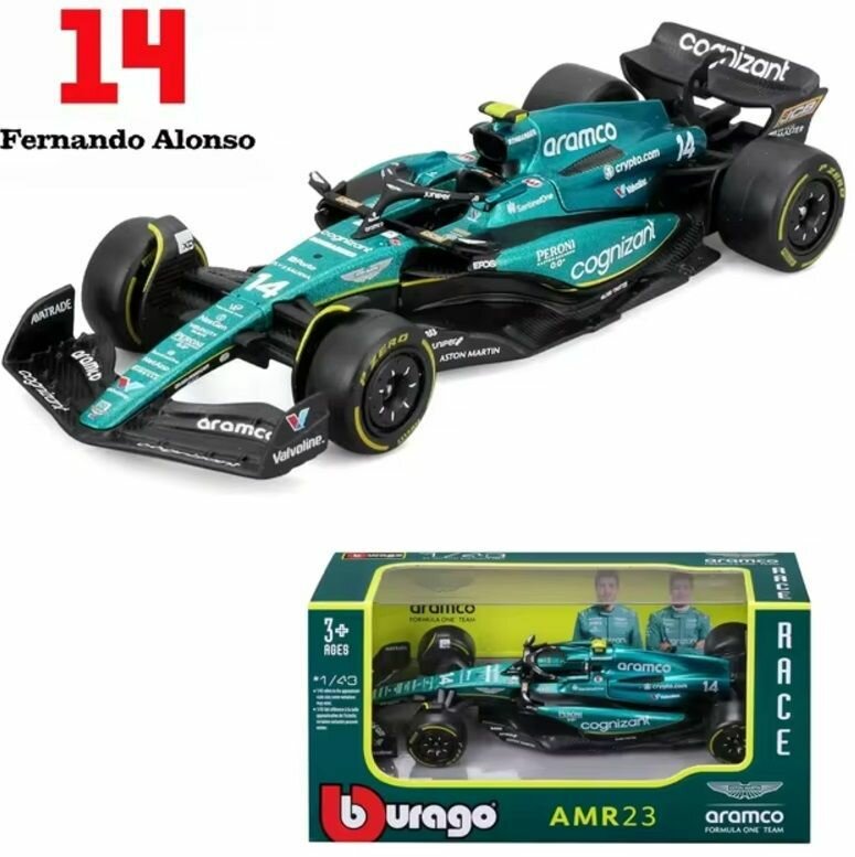 Купить Металлическая коллекционная модель "Bburago" болида "Эштон Мартин" Фернандо Алонсо (Fernando Alonso, Ashton Martin №14) Формула-1 сезон 2023. Масштаб 1:43