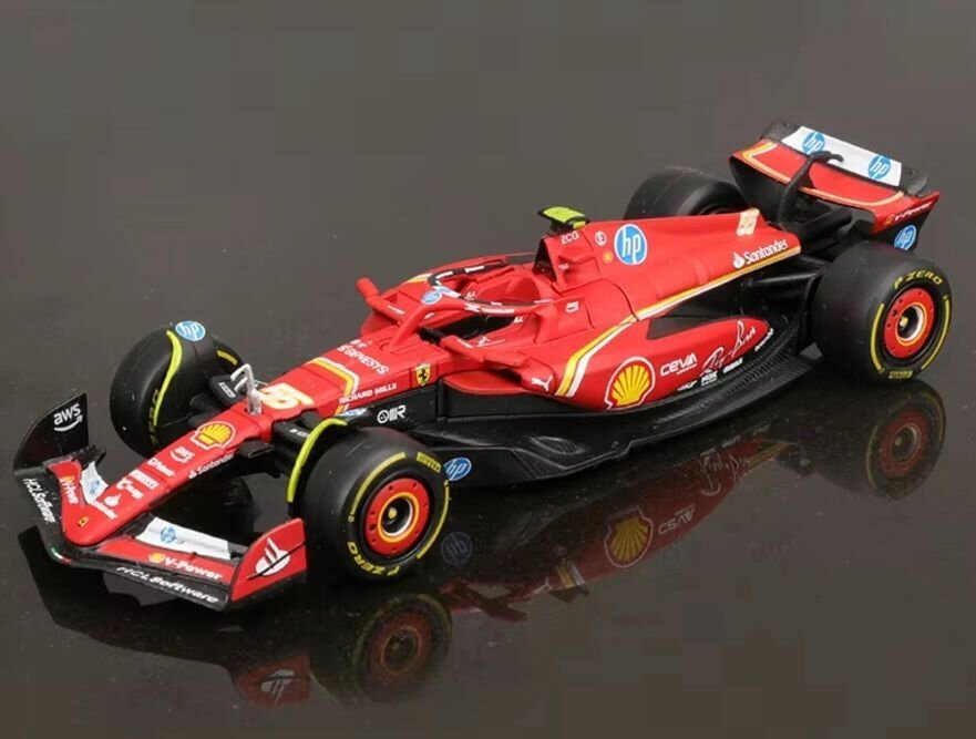Купить Металлическая коллекционная модель "Bburago" болида "Феррари" Карлос Сайнс (Carlos Sains/ Ferrari SF-24 №55) Формула-1, сезон 2024. Масштаб 1:43