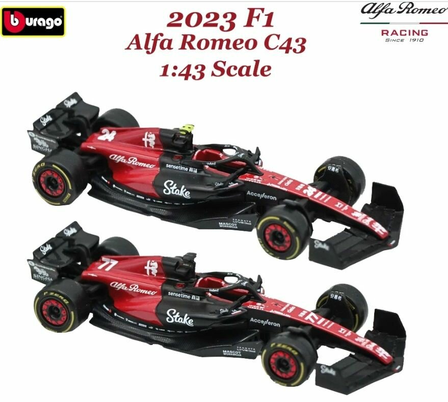 Купить Металлическая коллекционная модель "Bburago" болида "Альфа-Ромео" Чжоу Гуаньюй. ("Alfa-Romeo" C43 №24) Формула-1 сезон 2023. Масштаб 1:43