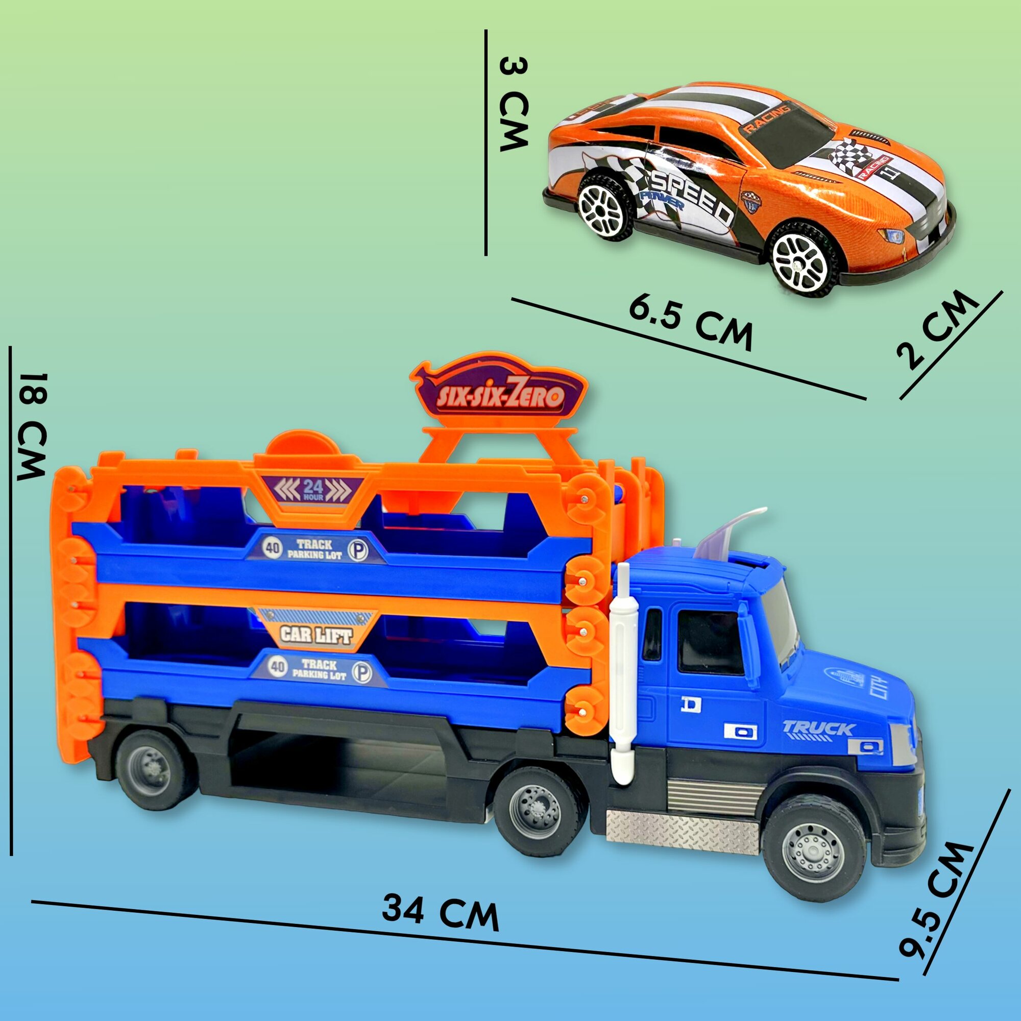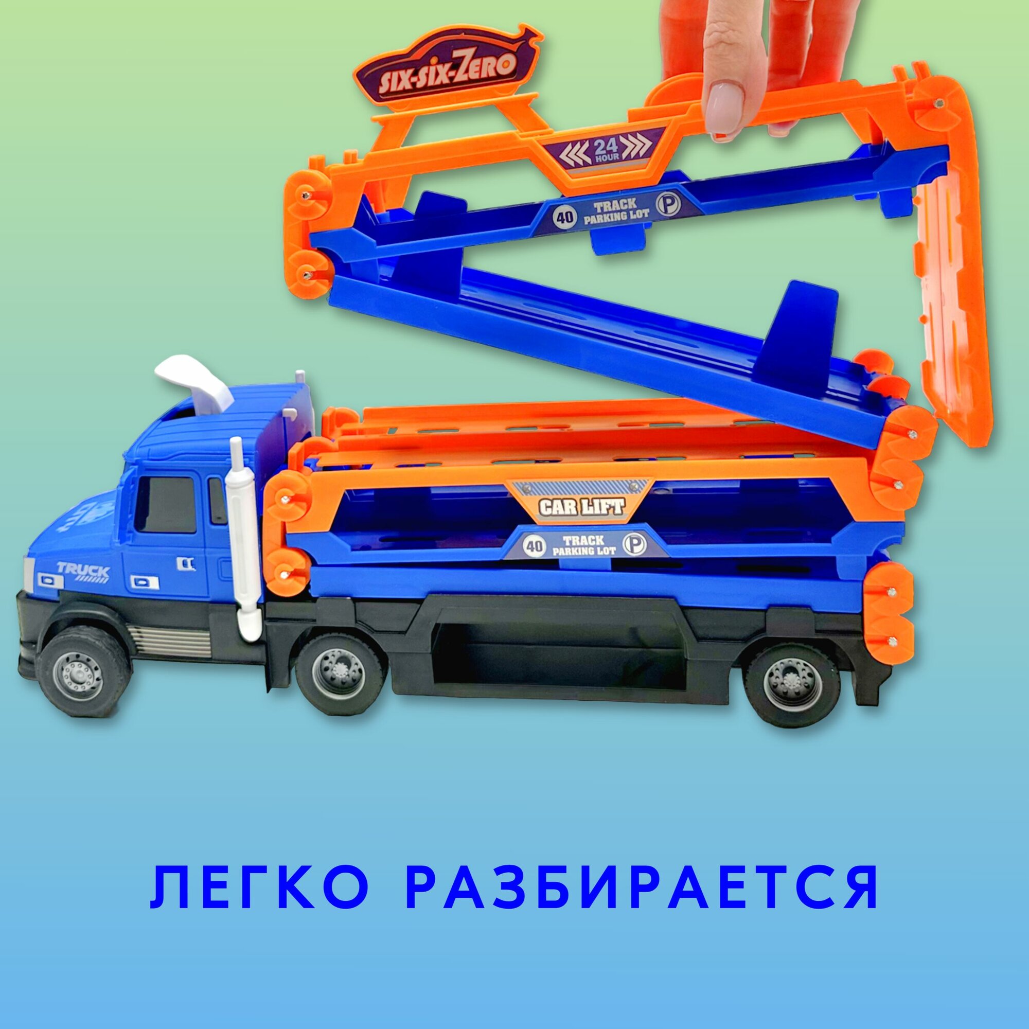Купить Автотрек трейлер с 6 металлическими машинками, Автовоз TRUCK игрушечный со звуком и светом + катапульта, трансформируется в большой гоночный трек 160 см