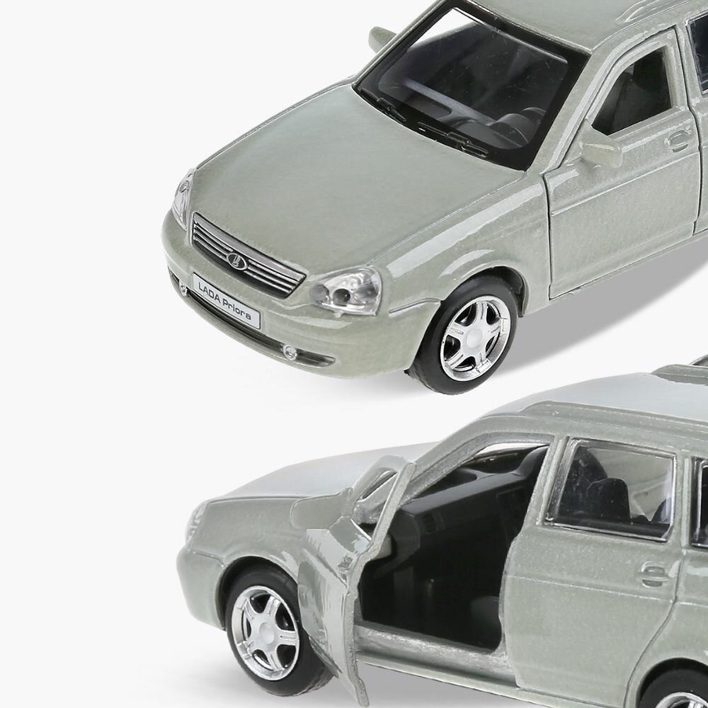 Машинка детская Лада Приора ВАЗ 2171 Универсал 12 см, Технопарк, серая, открываются двери и багажник, металлическая