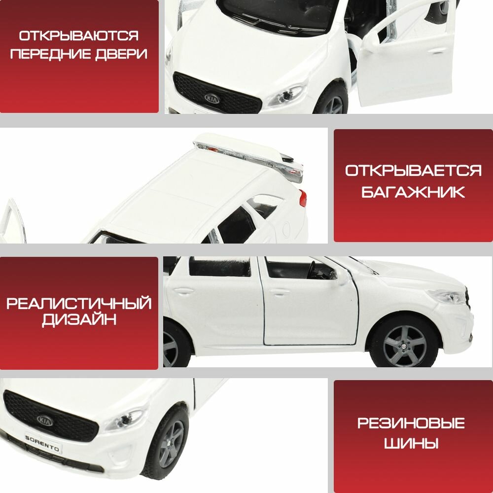 Машинка детская KIA Sorento Prime 12 см, Технопарк, белая, открываются двери и багажник