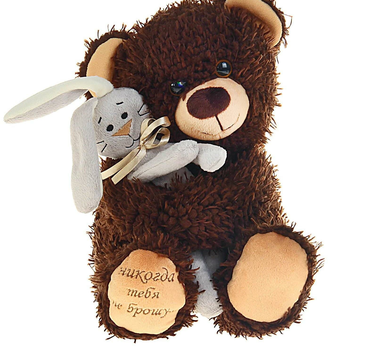 Медвежонок "Чиба" плюшевый с зайцем, 28 см Fancy МЧЗ01