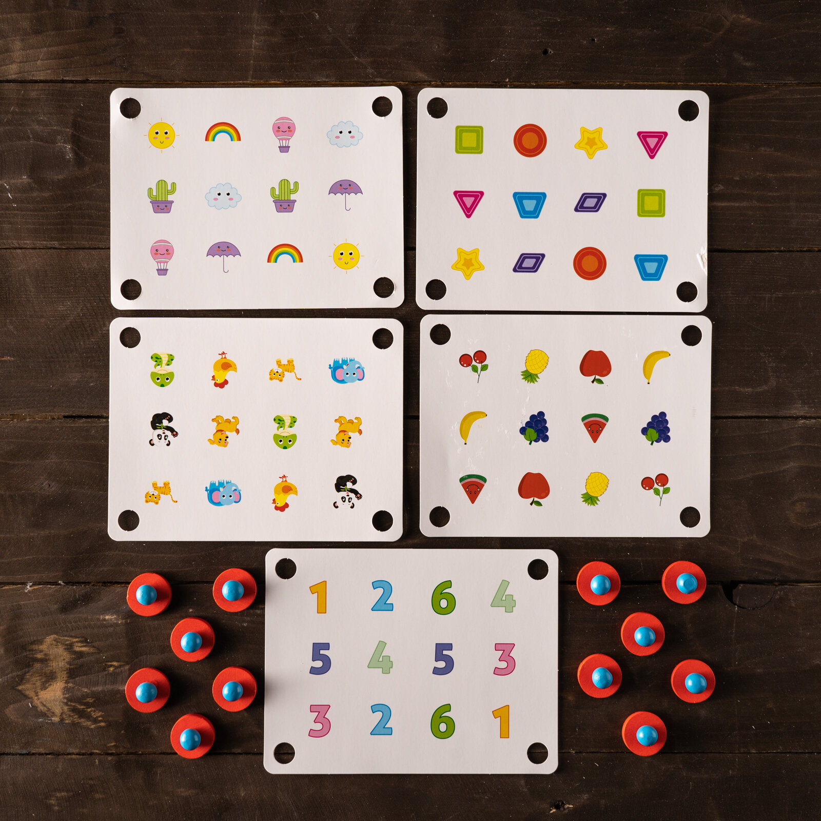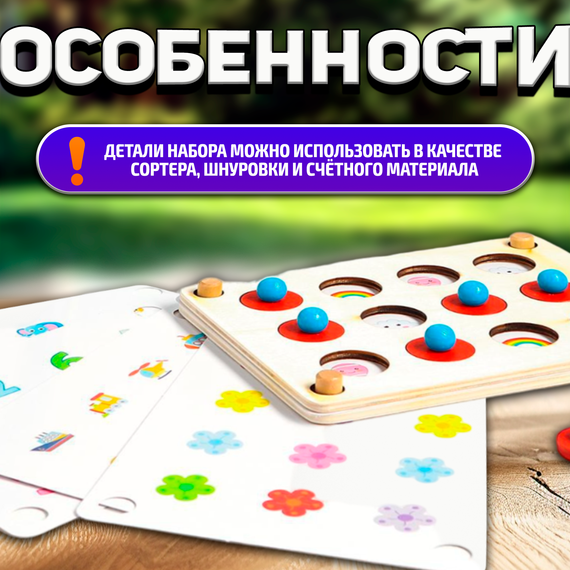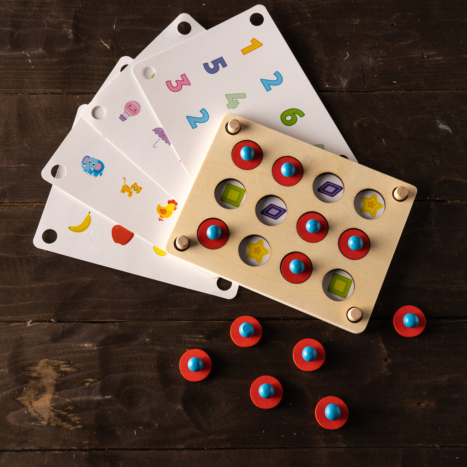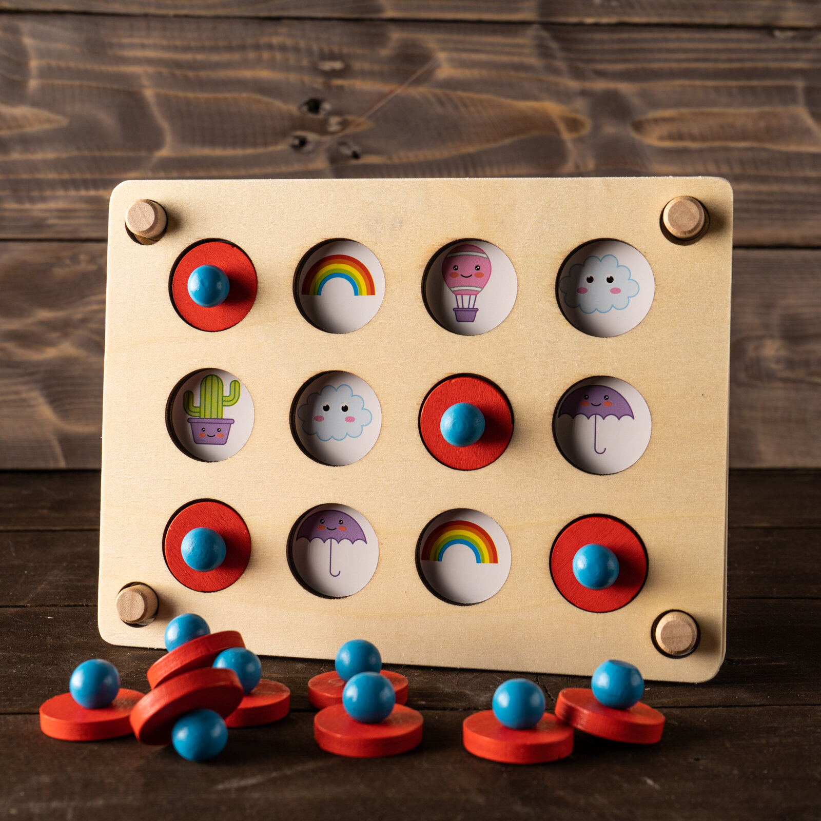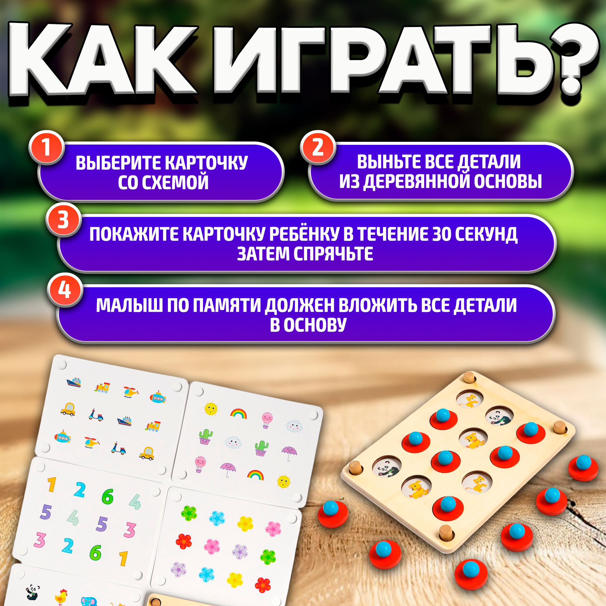 Настольная игра "Мемори", развивающая, 12 плашек, 5 карточек, размер: 13,5 х 18,5 х 2,8 см., для детей и малышей