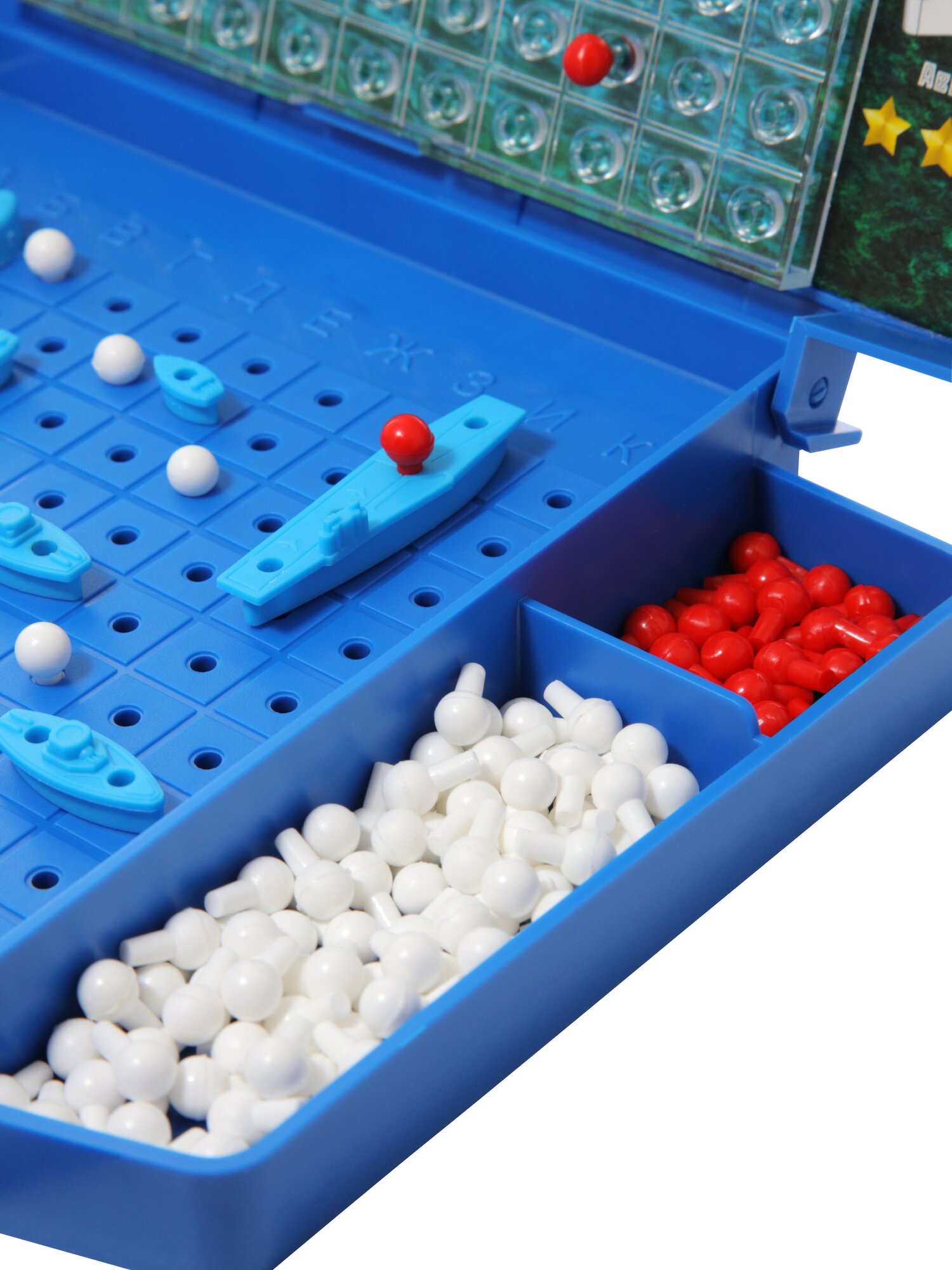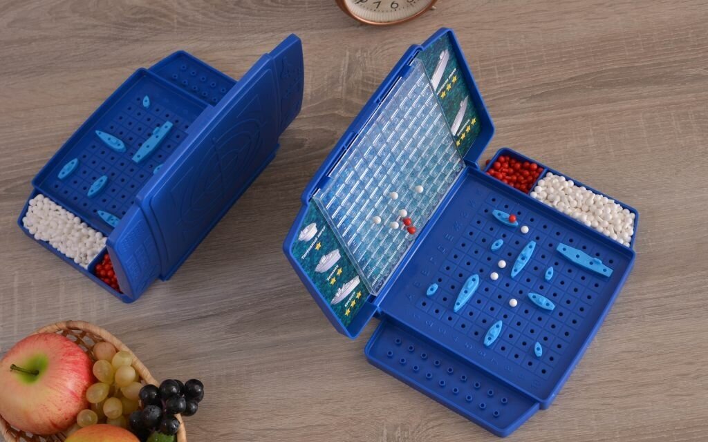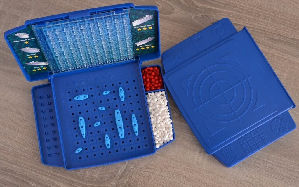 | Комплектация | игровое поле с экраном – 2 шт, крейсер – 2 шт, эсминец – 6 шт, белые фишки – 320 шт, авианосец – 2 шт, подлодка – 2 шт, торпедный катер – 8 шт, красные фишки – 80 шт |