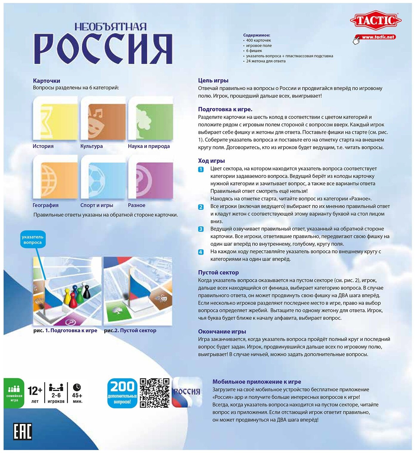 Настольная игра Tactic "Необъятная Россия", 400 карт, 12+, 6 игроков, 45 мин интересное:
