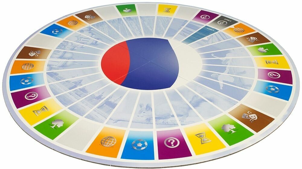 | Комплектация | 400 карточек, игровое поле, 6 фишек, указатель вопроса + пластмассовая подставка, 24 жетона для ответа |