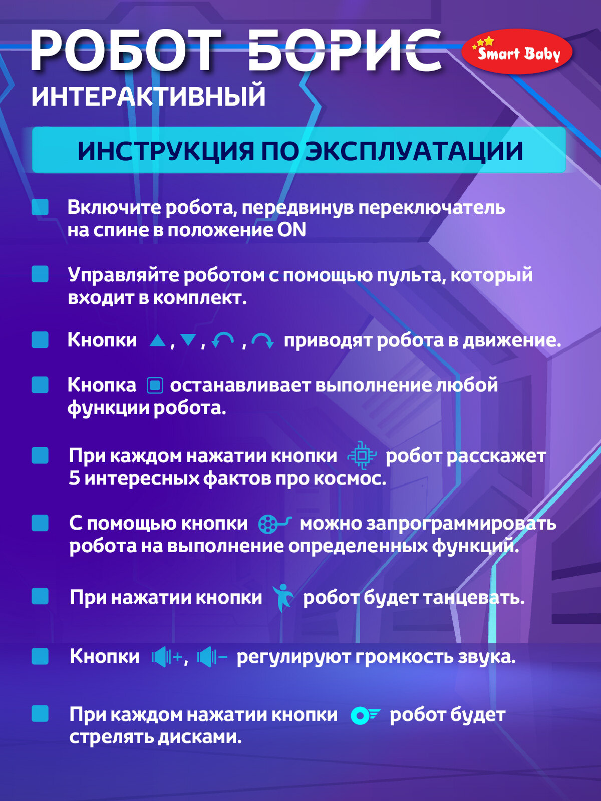 Интерактивный робот Борис, ходит, танцует, обучает интересным фактам о космосе, стреляет дисками, свет/звук, JB0213012 интересное: