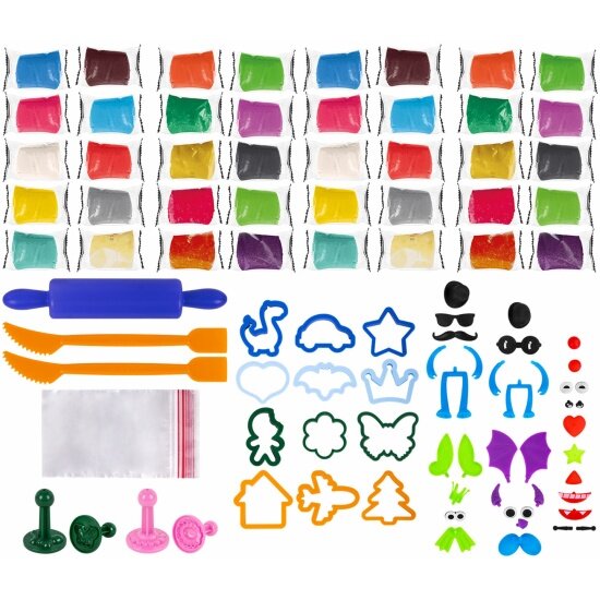 Пластилин-тесто Brauberg 40 шт, 2000 г, 12 формочек, 2 стека, 2 штампика, 1 скалка, 20 пакетиков для хранения