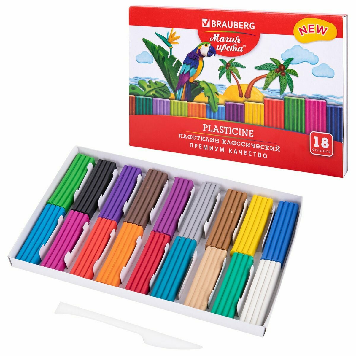 Пластилин классический Brauberg "Магия цвета New" 18 цветов, 360 г, стек, высшее качество