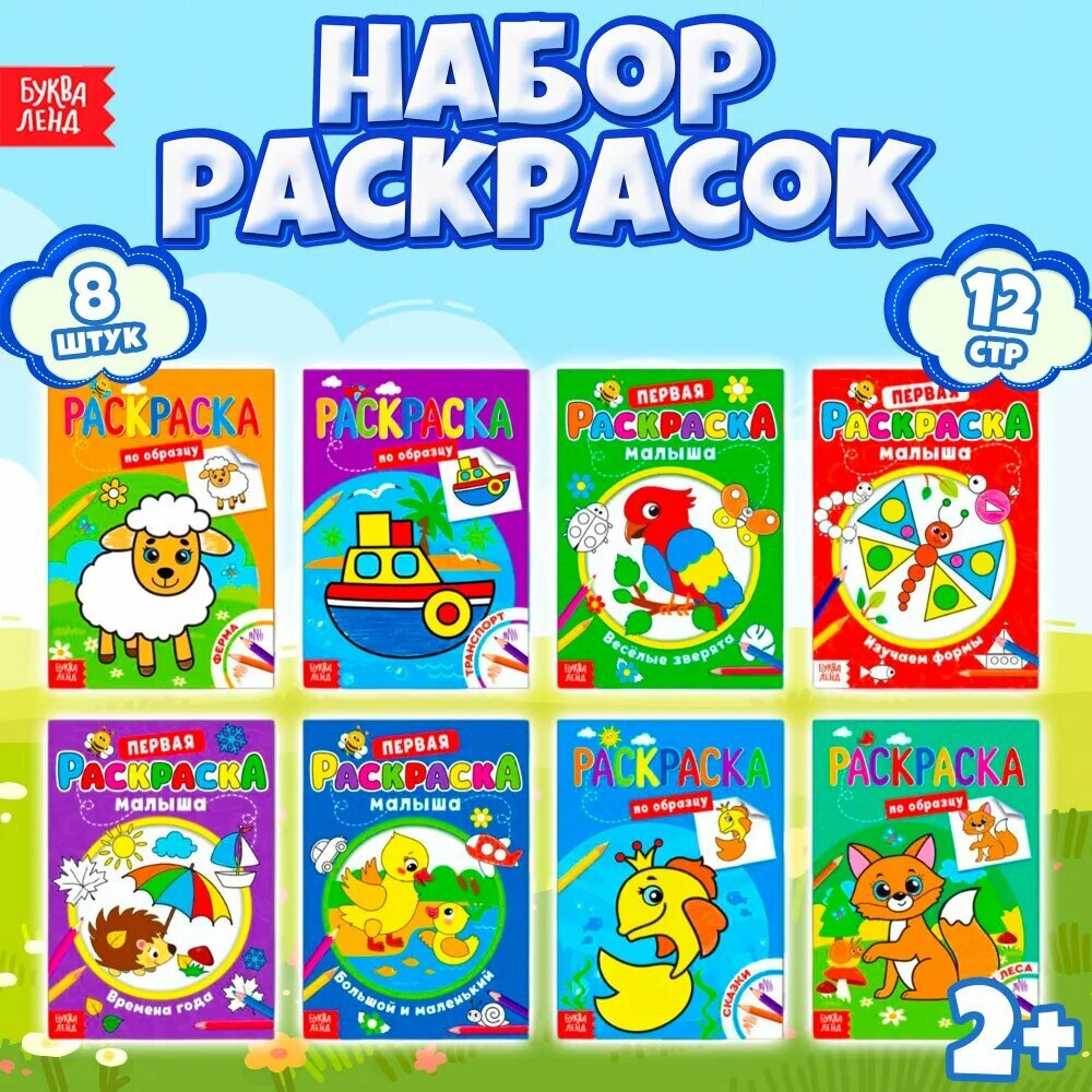 Набор рскрасок буква-ленд 8 книжек по 12 страниц, со стихами, развивающие, для детей и малышей