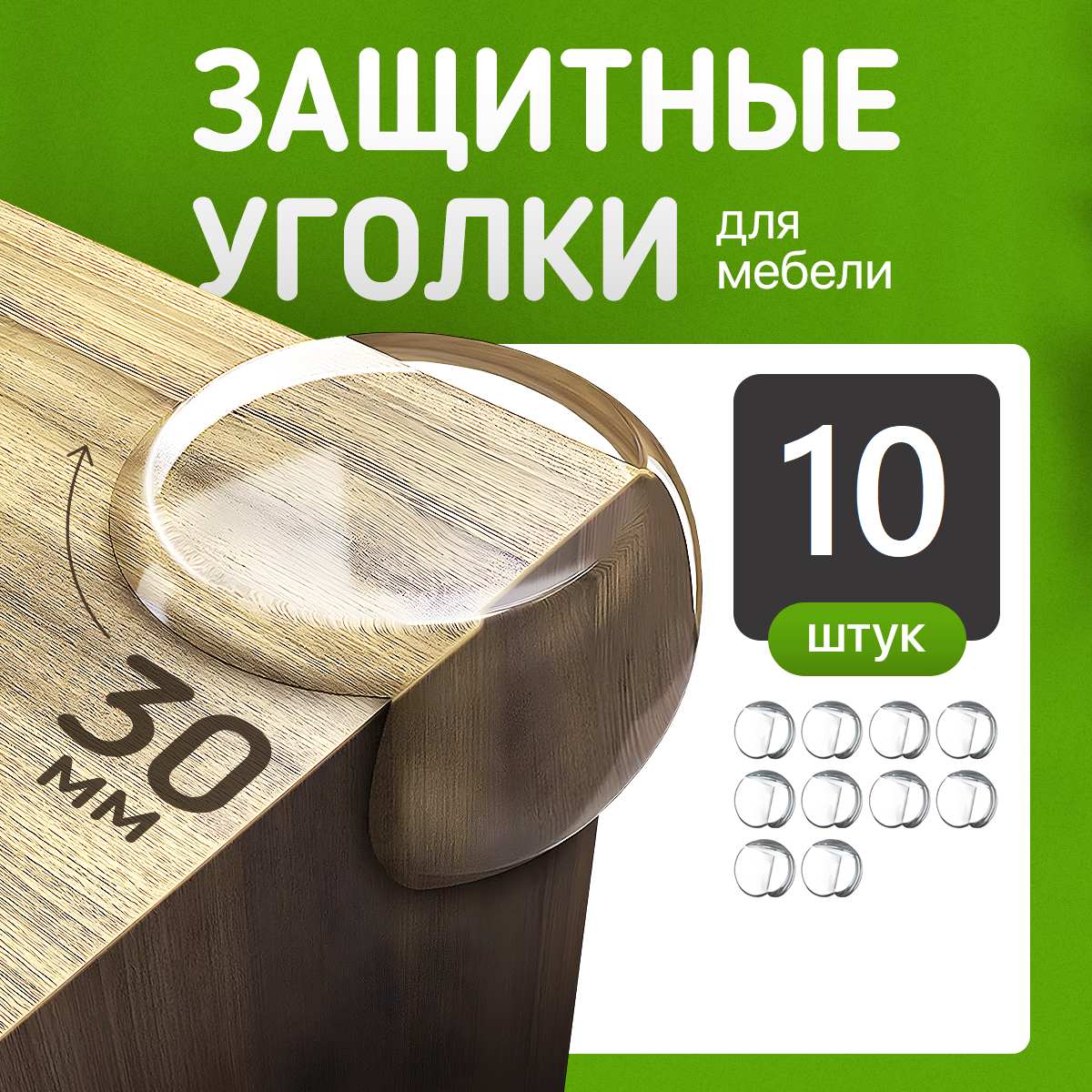 Уголки защитные на мебель/накладки на углы для безопасности детей, набор 10 шт. силиконовых, с усиленным акриловым скотчем
